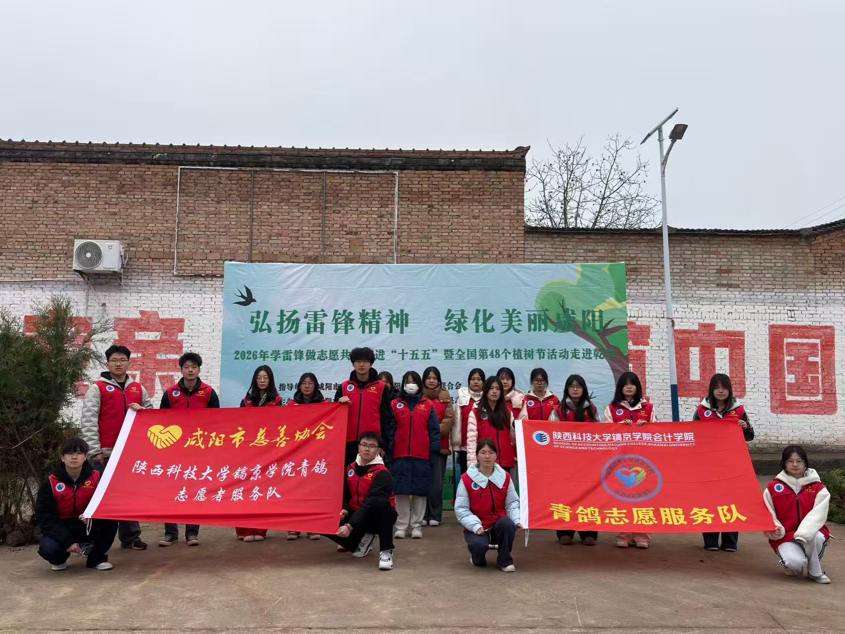 2026年3月8日,全国第48个植树活动之际,青鸽志愿服务队赴乾县梁山镇永久村,参与“弘扬雷锋精神·绿化美丽咸阳”植树活动,以实际行动践行生态文明理念,弘扬志愿精神。活动现场,咸阳市慈善协会公益志愿者分会会长王鹏介绍活动情况,乾县梁山镇永久村领导作指导讲话,乾县关爱少年儿童协会会长谈治国强调植树安全事项,陕西建工第十一建六公司党总支副书记王月月宣布活动启动,仪式由青鸽志愿服务队分队长薛浩然同学主持。活动中,...
