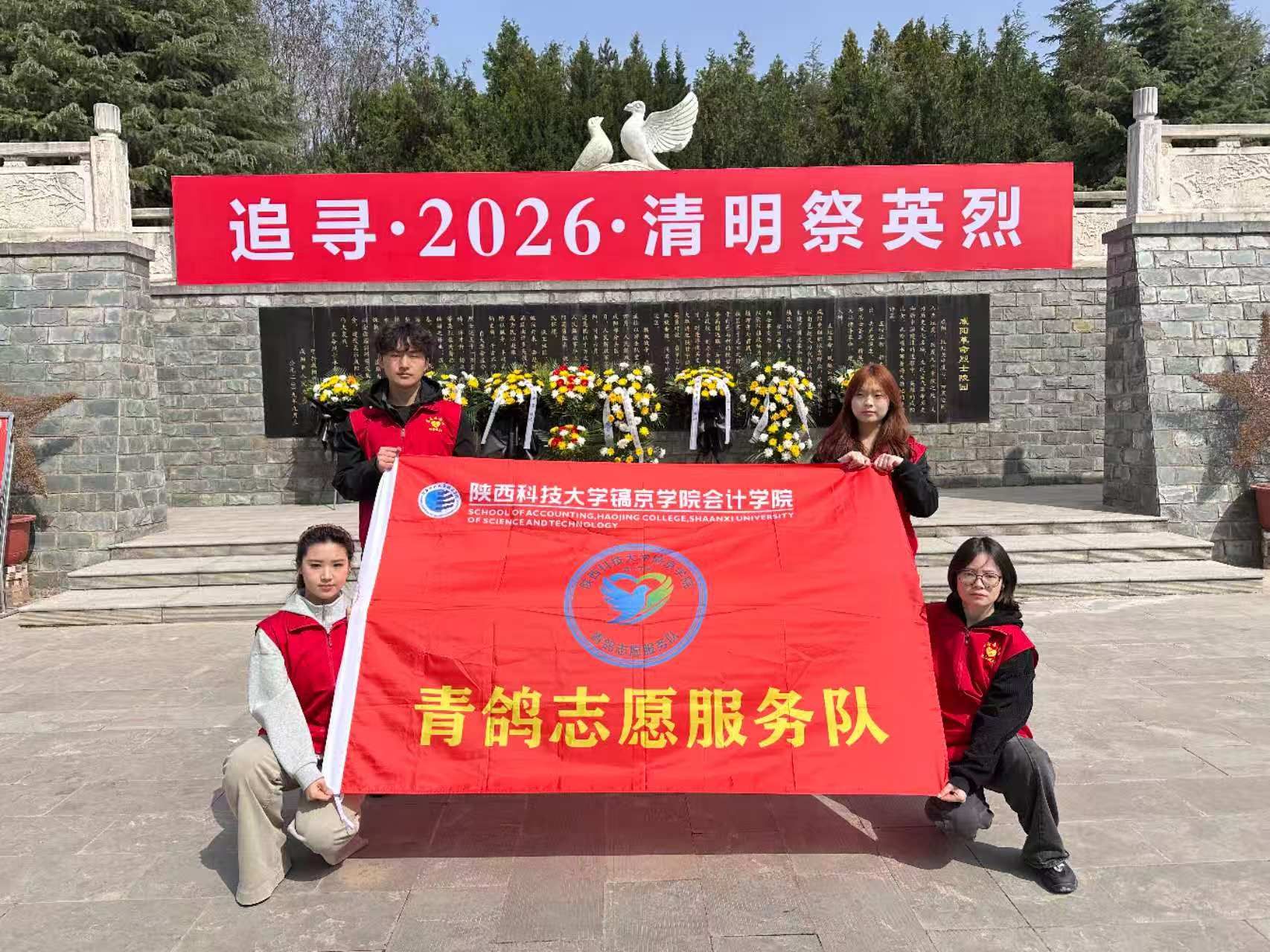 青鸽志愿服务队//必发集团青鸽志愿服务队赴咸阳革命烈士陵园开展清明祭英烈活动