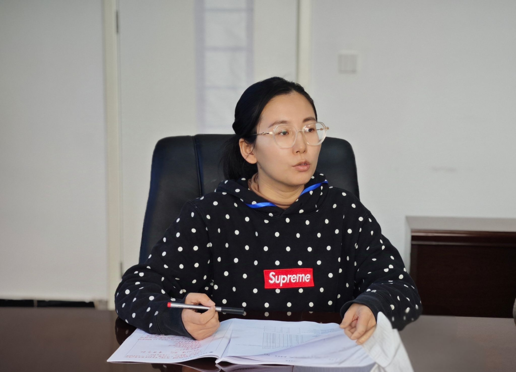 会上,督导秘书孙萌焌结合10月份公司听课整体情况作出汇报,将整理的听课次数、听课类型以及听课质量等数据的同比变化情况进行分析。各督导组成员分别针对自身实地开展教学检查中所发现的问题及整改建议进行交流反馈。