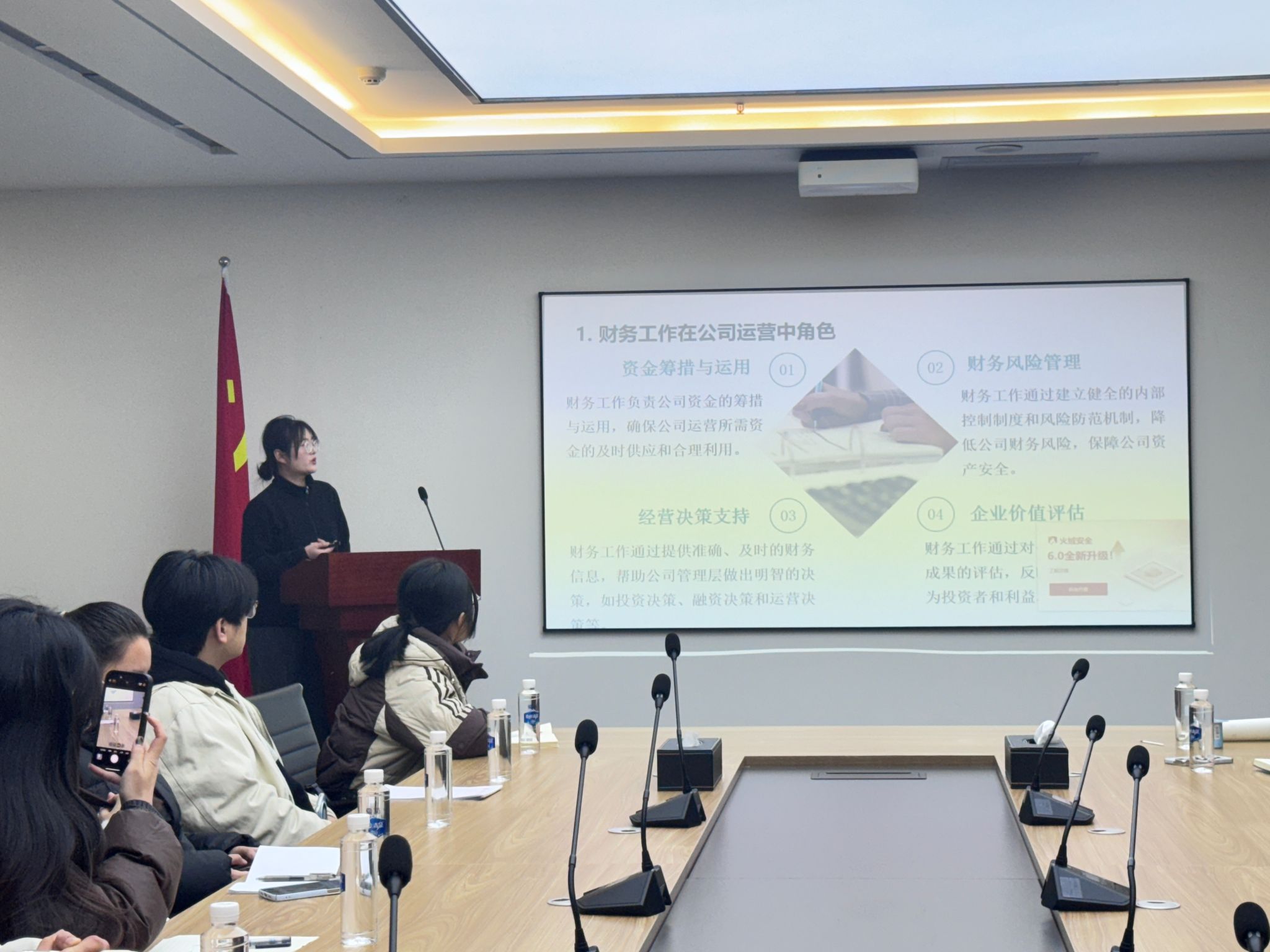 集团财务管理中心闫宁老师做了《在不断成长中,遇见更好的自己》报告,详细介绍了财务会计工作的特点与作用,表示财务会计工作涉及面广、专业性与实践性强、业务繁杂,知识更新快,同学们要积极更新知识,以便更好的进行财务工作,并介绍了爱菊集团在财务风险管理以及预算管理方面的数据情况以及制度体系。同时从自身经历出发,给即将进入职场的同学们提供建议,在职场中要培养合作精神,积极请教同事,努力提升自己。闫宁老师的为同学们缓解了即将进入职场的焦虑,同时坚定了理想信念。
