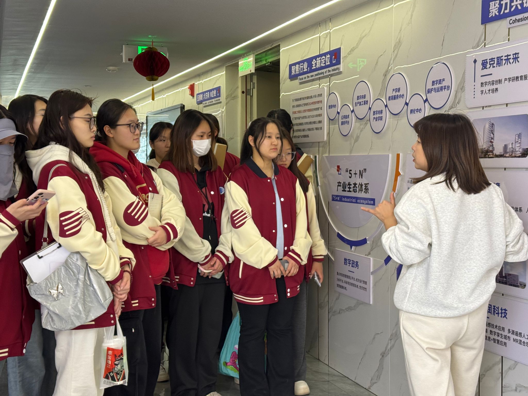 参观当日,在部门经理于超宏的带领下,师生一行参观了公司数字动画制作中心、VR/AR数字互动应用实验室及文化创意产品展示区。作为一家深耕数字技术领域多年的企业,西安爱克斯未来文化科技有限公司以其高科技的业务布局和创新成果给员工们留下了深刻印象。整洁现代的办公环境、前沿的数字化技术应用以及员工专注高效的工作状态,直观展现了数字技术行业的巨大潜力与发展前景。