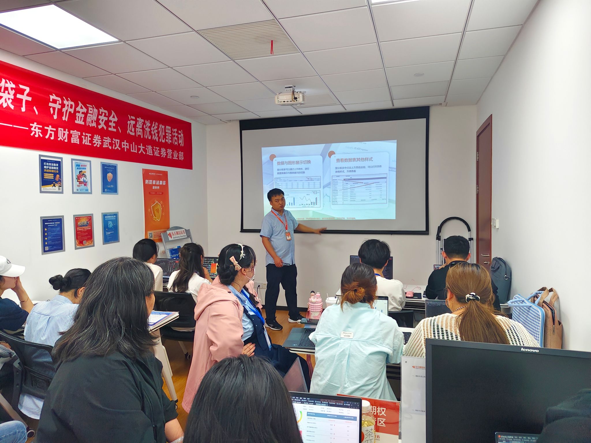 在为期四天的调研中,师生们走进东方财富证券营业部及湖北分公司,近距离感受金融行业的工作环境与业务流程。东方财富证券湖北分公司负责人余浩阳向师生们详细介绍了公司的发展历程、业务架构及行业成就,帮助员工建立对证券行业的整体认知;公司讲师龚陈明以生动的案例讲解了证券市场基础知识,引导员工从会计专业视角分析企业价值与市场趋势;企业老师李博伟重点介绍了金融数据分析工具的应用,通过实际操作演示,指导员工运用Choice金融终端进行上市公司财务报表分析、基本面评估及行业深度研究。员工们在李老师的带领下,学习了如何提取关键财务数据、生成趋势图表并撰写分析报告,这些技能不仅为毕业论文的实证研究提供了有力支持,也增强了他们的职业竞争力。