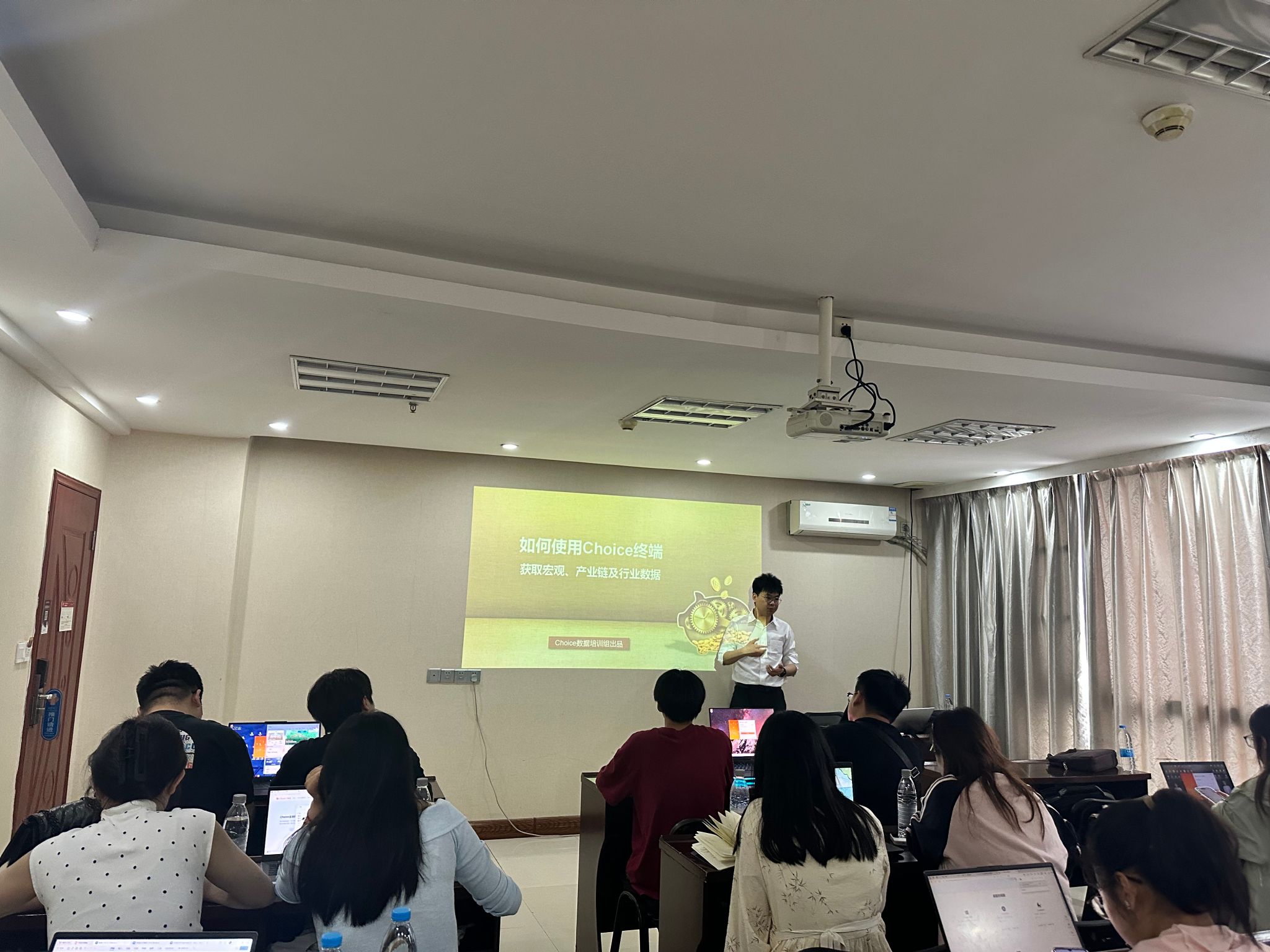 调研第一站,同学们来到湖北洁诺财税管理有限公司,探秘财税管理前沿,公司负责人向同学们详细介绍了企业财税管理的核心业务流程,包括税务筹划、风险管控、财务合规等方面的实操经验。公司财税部门资深员工作《企业财税管理与金融实务》专题讲座,结合行业前沿动态,为在场员工的学术研究及毕业论文撰写提供创新思路与实务指导。公司优秀实习生代表以"从校园到职场"为主题,分享求职心路历程、大学竞赛经验及职业能力培养建议,助力毕业生做好职业规划。业务部余老师,为同学讲解了金融数据服务平台choice中会计数据的采集、清洗与标准化处理方式。员工进行分组实操练习,结合证券业务,分析资本市场相关会计问题。