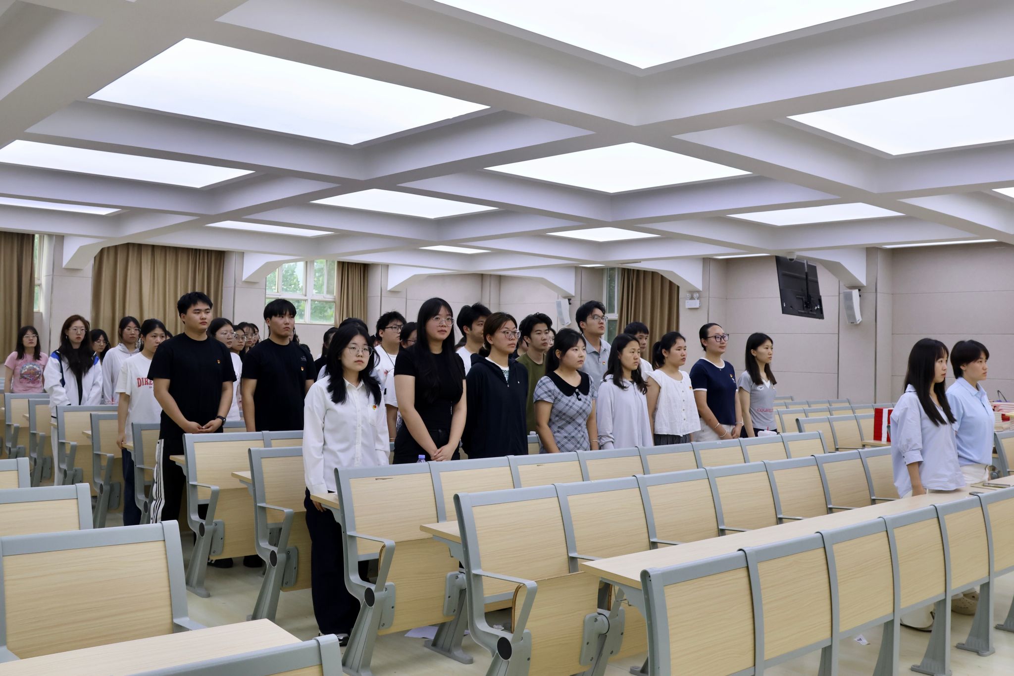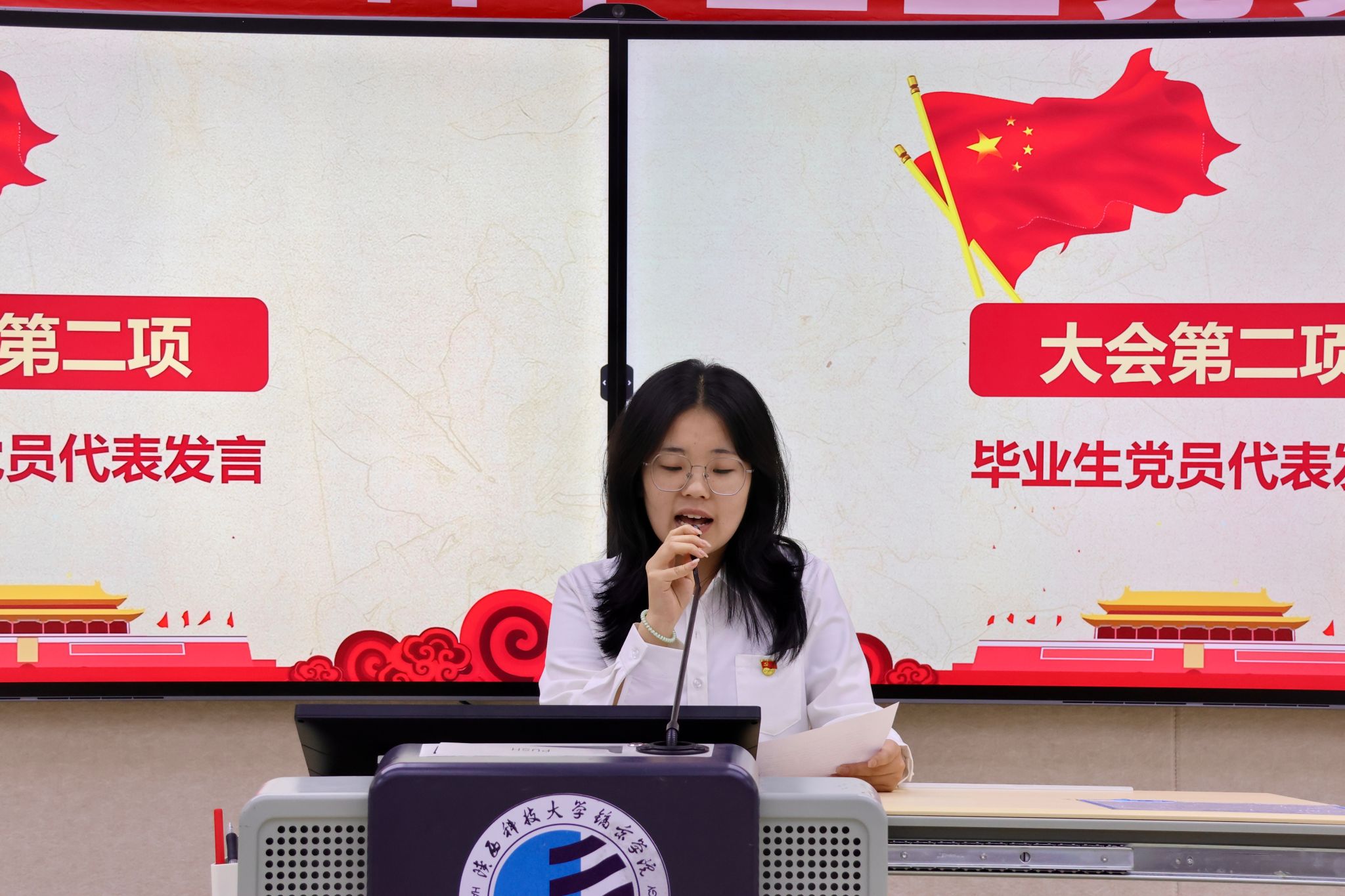 在第一员工党支部李嘉欣同志的领誓下,全体毕业生党员面向党旗庄严宣誓。铿锵誓言响彻会场,毕业生党员将始终永葆政治本色,以实际行动践行誓言。