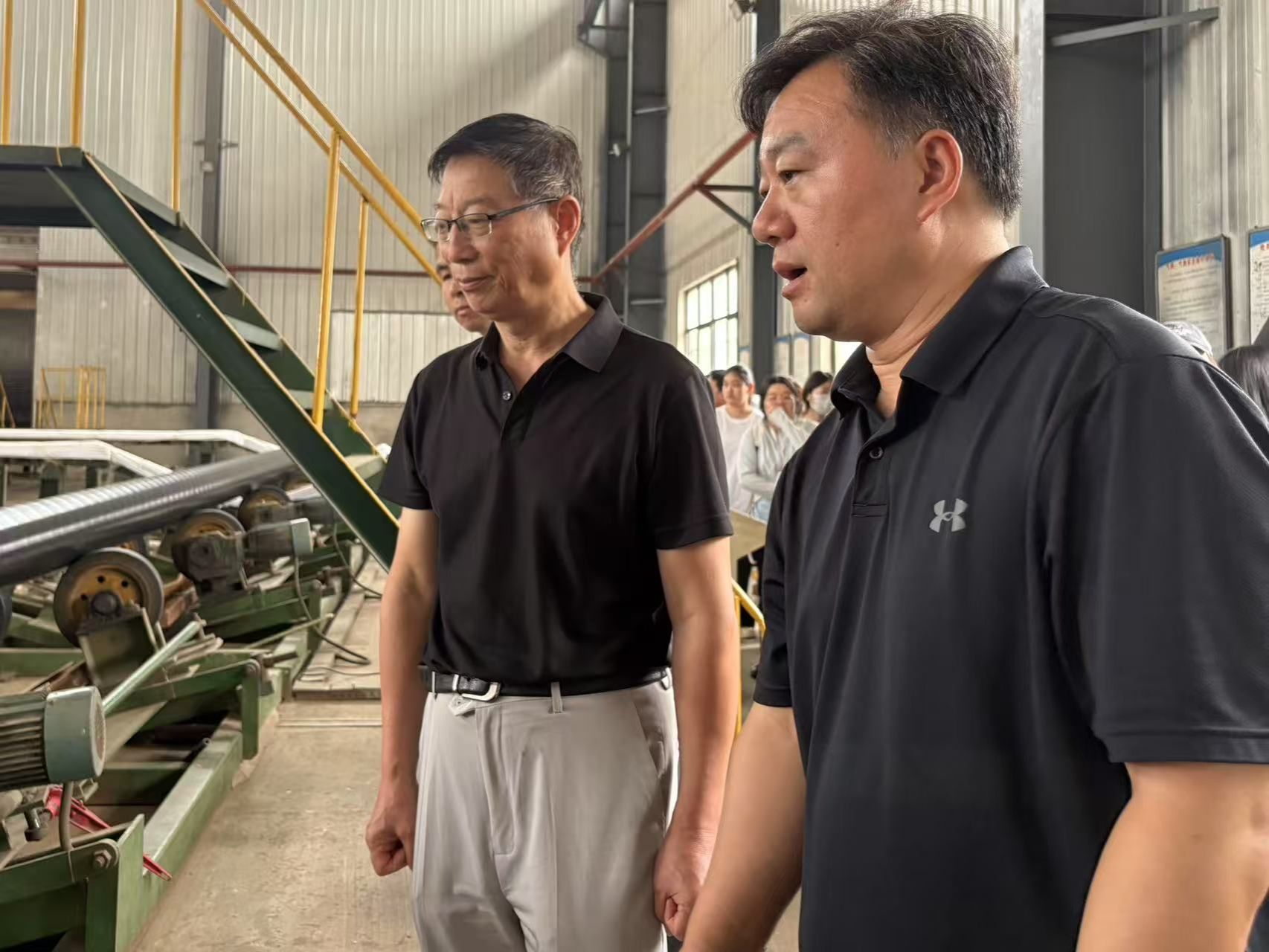 在参观车间过程中,杨君岐教授与张总围绕企业管理、发展规划及财务运营等话题展开了深入探讨。杨教授结合专业视角,就成本控制、资金流转等财务问题提出了独到见解,张总则分享了企业在实际运营中遇到的财务挑战与应对策略。这场“干货满满”的交流,让在场同学对企业财务与管理的关联性有了更深刻的认识。