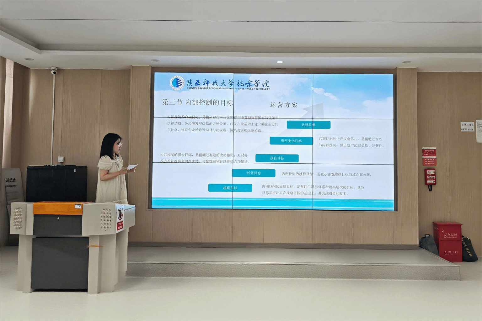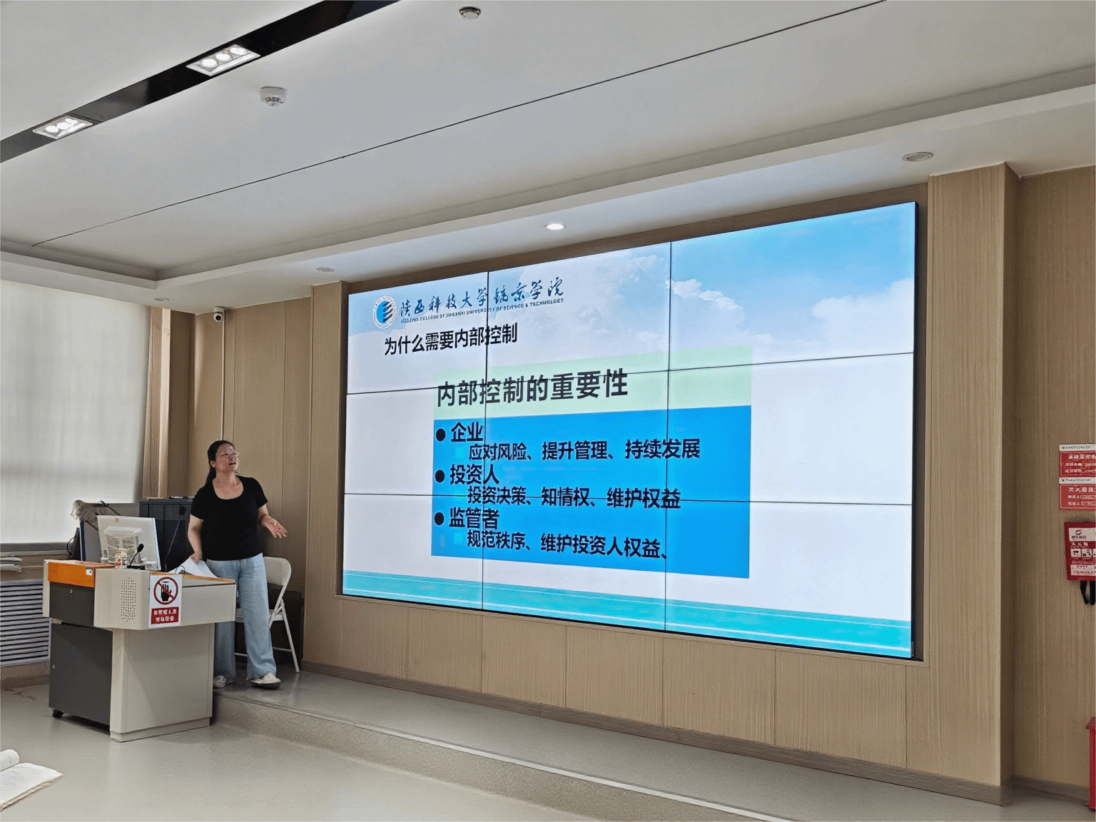 首先,由《内部控制制度》课程授课教师樊赛兵、刘漾、张瑾、吕冰倩、武英子五位教师进行说课。樊赛兵老师从课程导入入手,强调了内控课程对员工实践能力培养的重要性。他分享了如何通过真实案例增强员工的风险识别与控制设计能力,为课程学习奠定良好基础。刘漾老师介绍了课程内容设置,聚焦课程内容的模块化重构,通过设置分层教学目标适应不同员工的学习需求。张瑾老师则结合课程要求和目前就业市场的岗位需求,详细介绍了课程培养目标,使课程学习更加有的放矢。吕冰倩老师和武英子老师分别从不同角度分享了各自的教学思路与实践经验。吕冰倩老师聚焦“思政融入”,展示了如何将职业道德、诚信教育等内容自然嵌入课堂教学。武英子老师则演示了如何利用信息化工具开展互动教学,提升课堂参与度。每位老师的说课各具特色,展现了深厚的教学积累与鲜明的个人风格,为在座教师提供了宝贵经验。