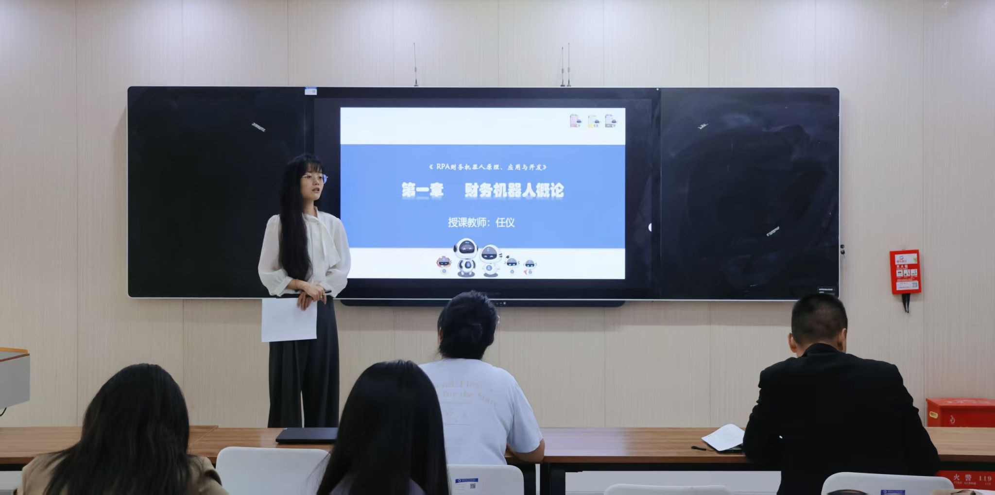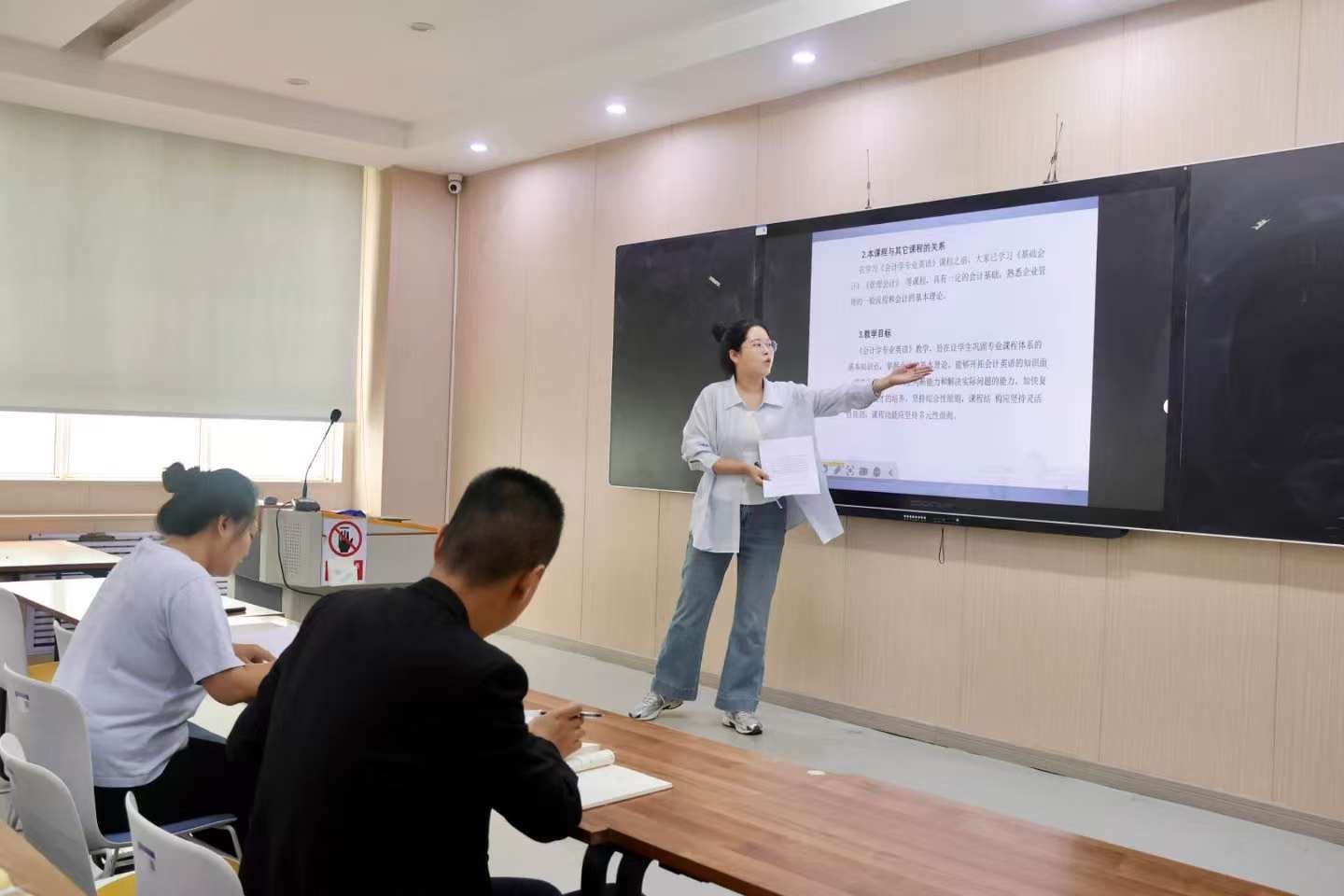 为进一步提升教学水平,8月29日,会计系在实验楼312教室举行课程试讲交流会。几位专任教师依次登台,展示《会计专业英语》《RPA财务机器人的开发与应用》《中级财务会计》等核心课程的教学设计。会计系主任姚叶叶老师及课程负责人参会,会议由教研室主任王文豪老师主持。