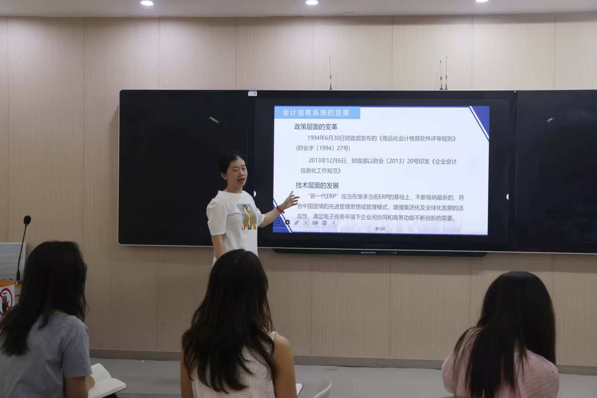 贾亚锦、王蓉、樊香荣三位老师共同围绕《会计信息系统》课程进行了磨课展示。在教学设计上,三位老师紧密合作,注重课程内容的连贯性和逻辑性。她们计划以企业会计实际工作流程为主线,结合用友、金蝶等主流会计软件,开展案例教学和实操教学。