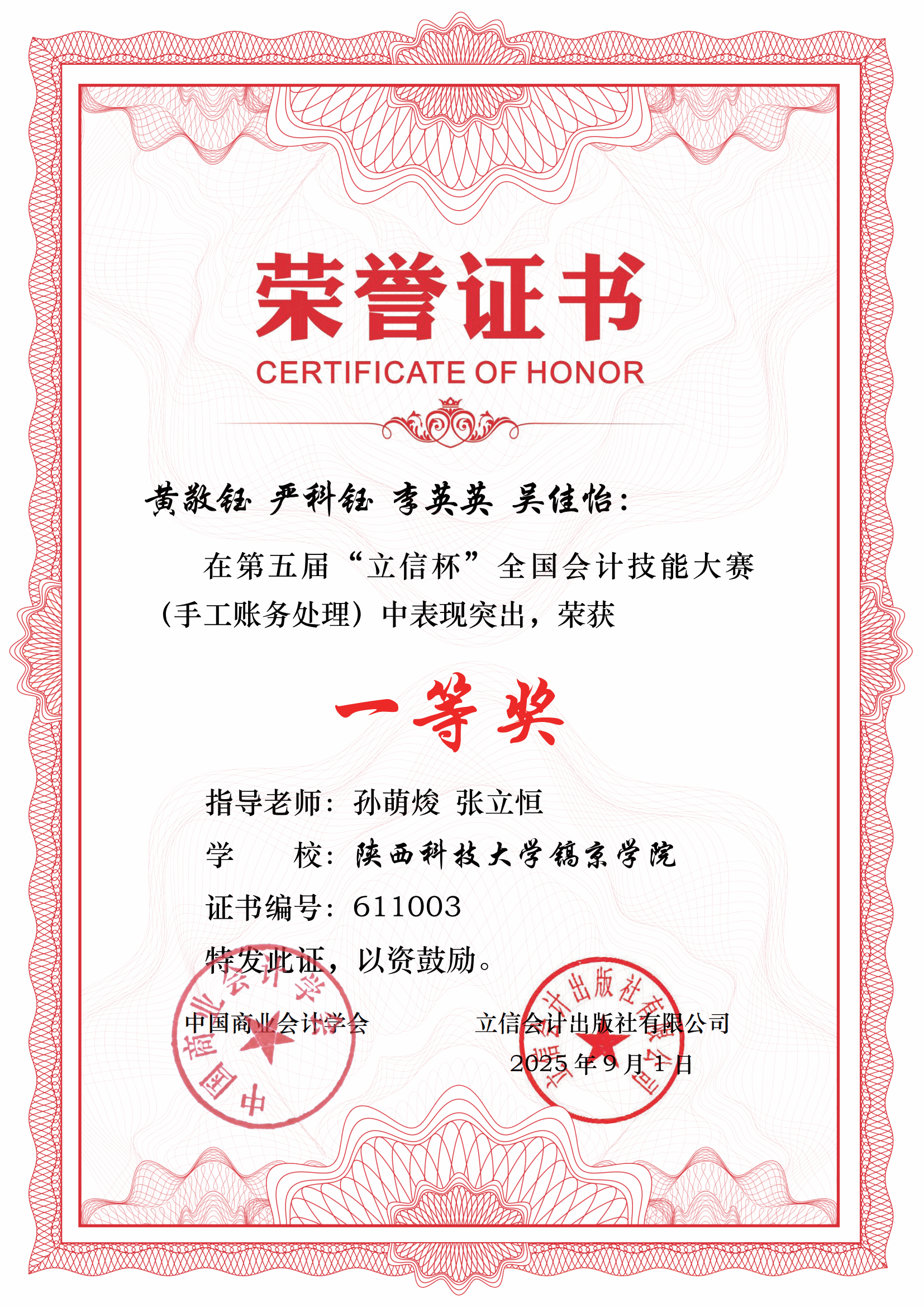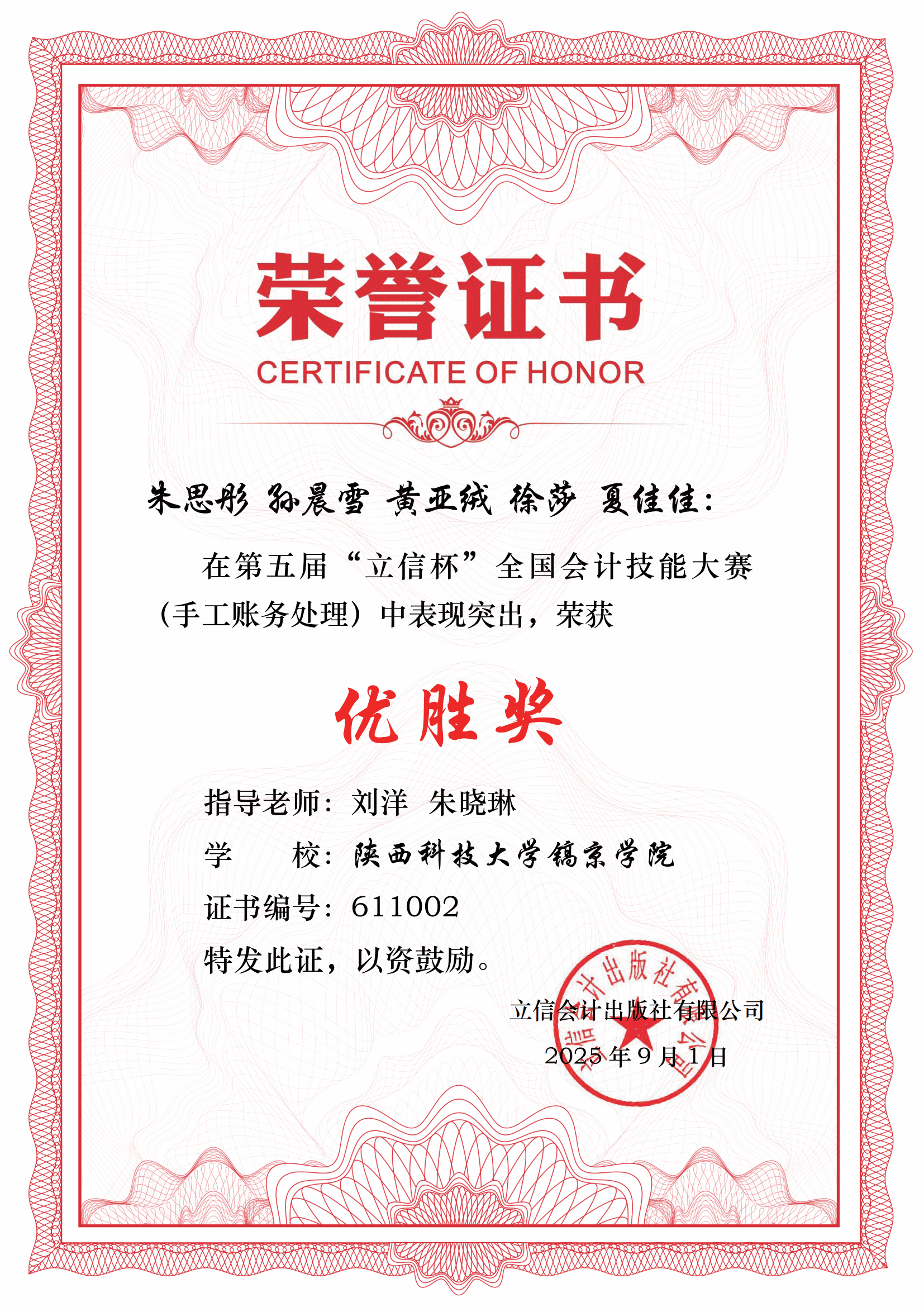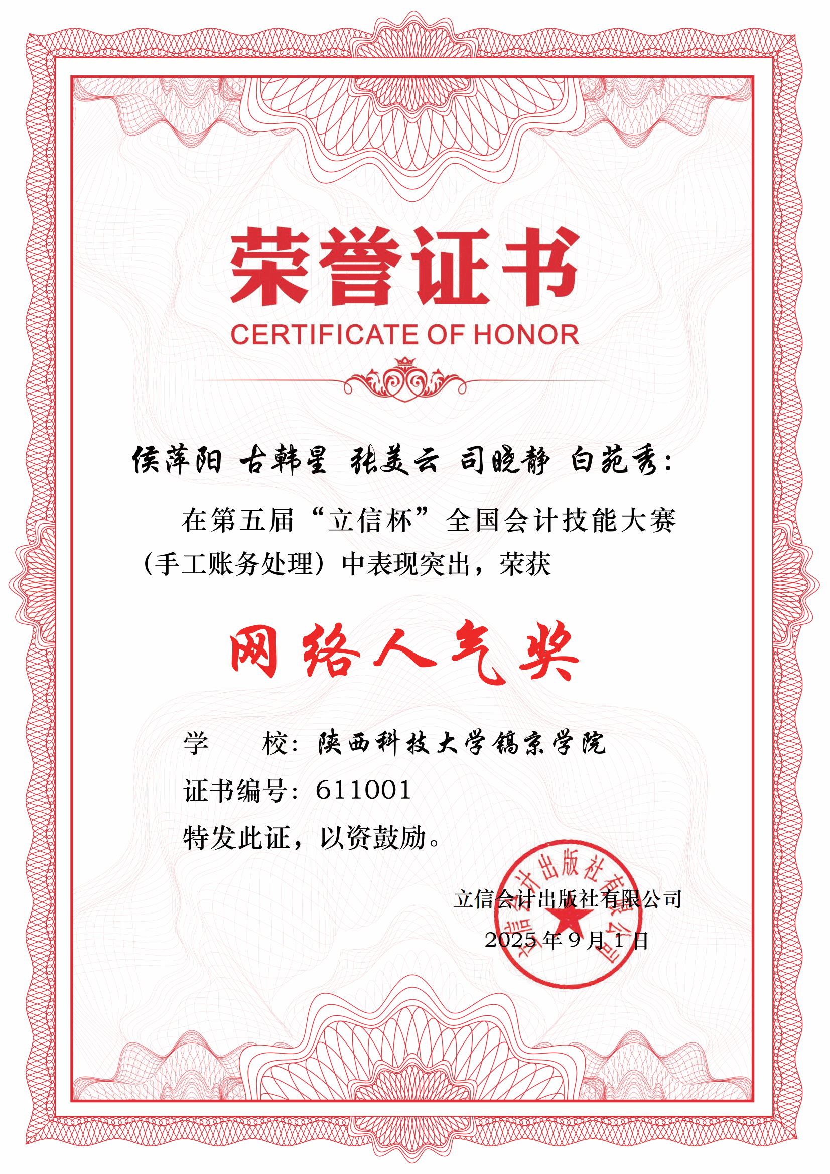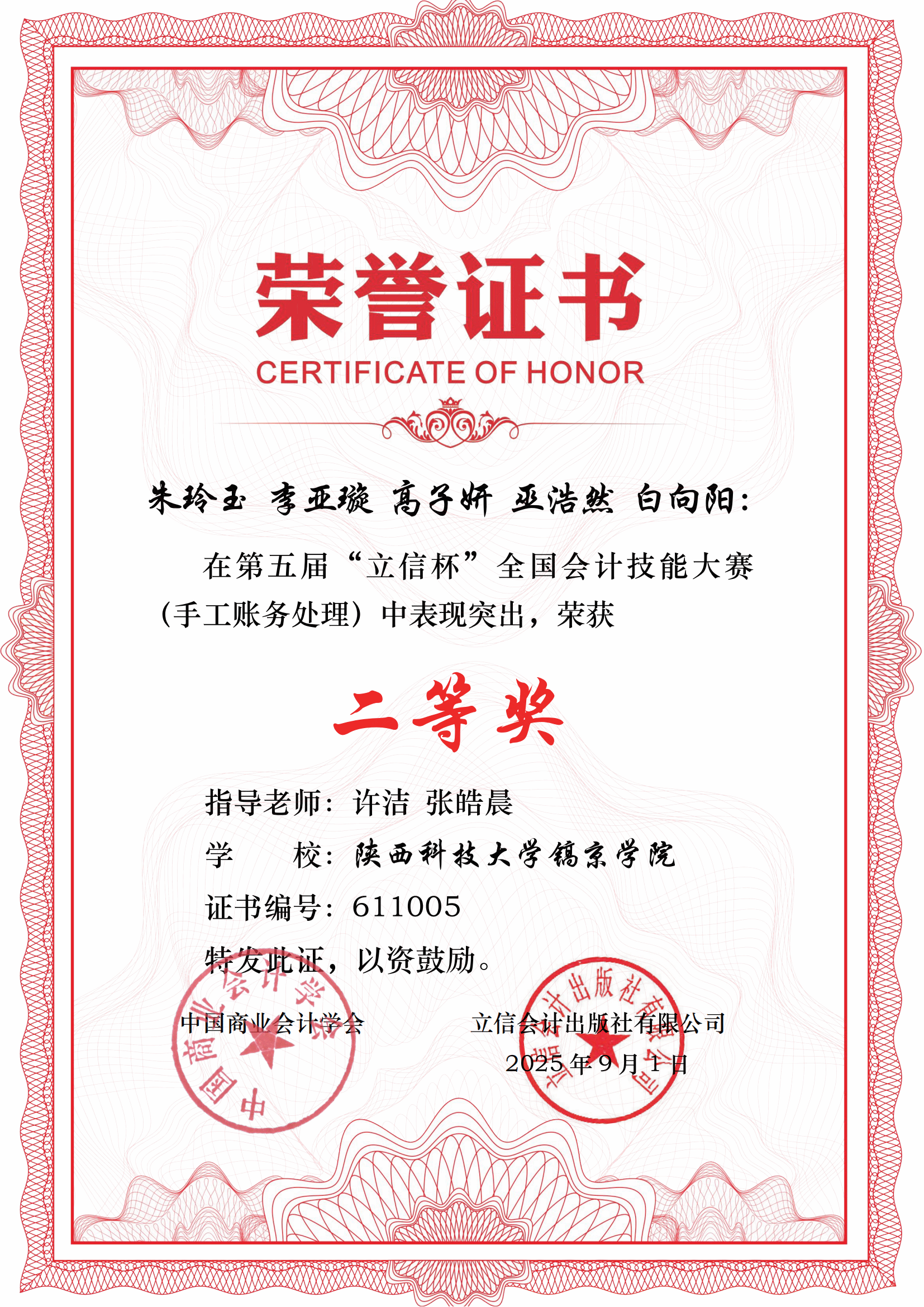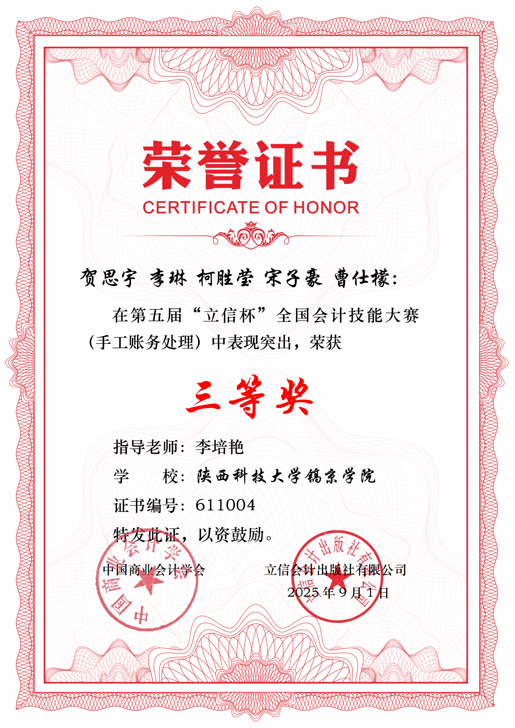 2025年9月,由中国商业会计学会主办、立信会计出版社承办的第五届"立信杯"全国会计技能大赛(手工账务处理)圆满落幕,公司在第五届“立信杯”全国会计技能大赛中斩获佳绩。
