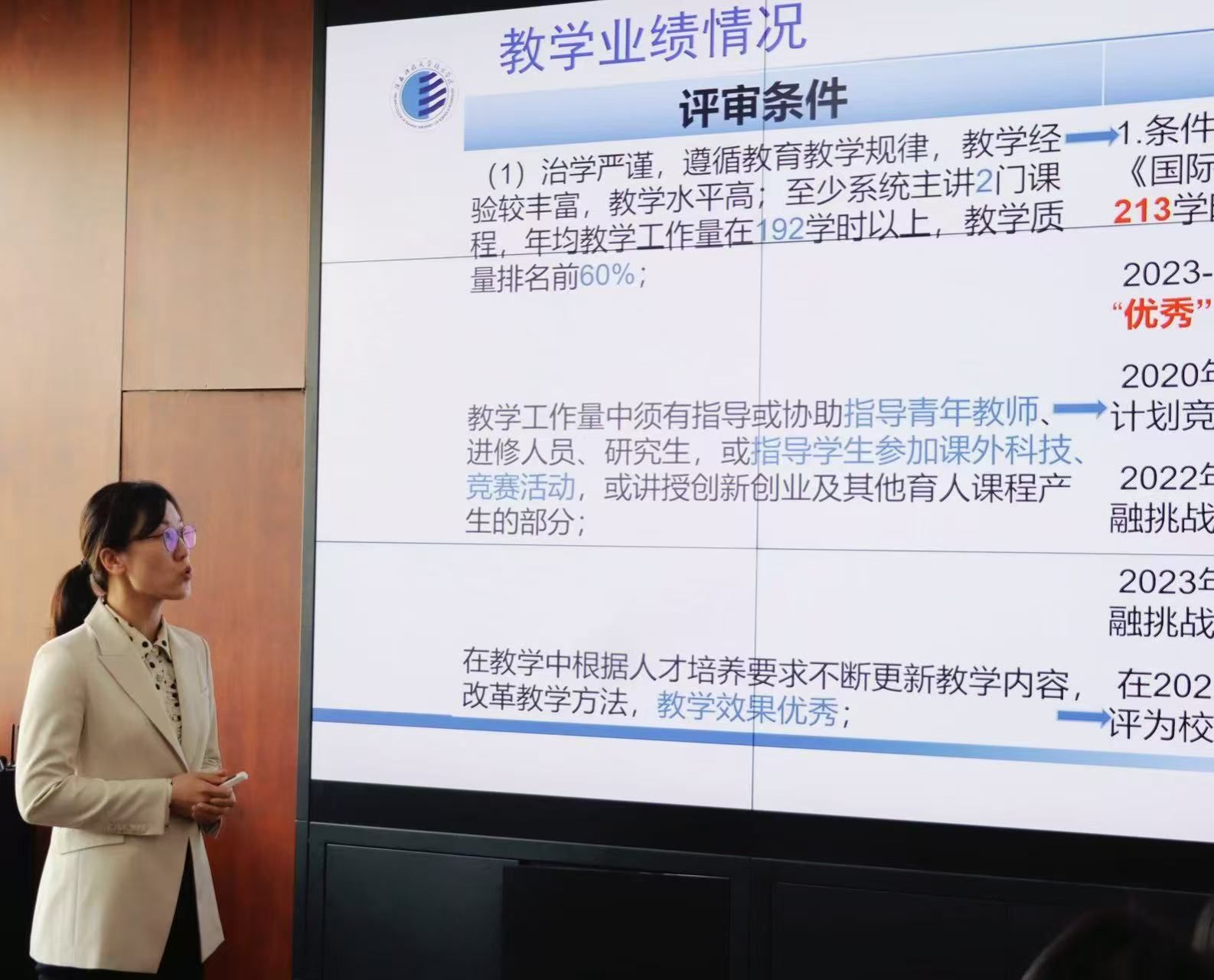 随后,符合职称申报条件的教师依次汇报,汇报内容围绕年度考核结果、教学工作成效、论文论著发表情况、项目研究情况,以及所获荣誉等方面,并与现场人员进行交流。针对汇报过程中大会提出的各类问题,申报人员结合自身实际工作与成果,逐一进行了具体且详实的解释说明。