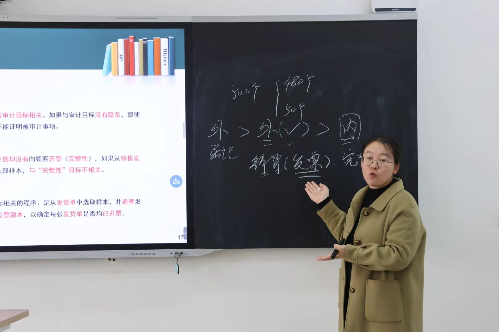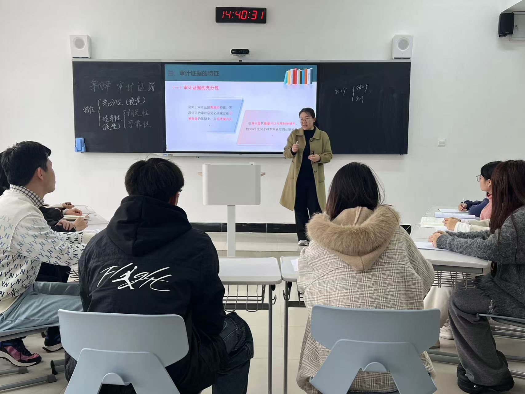 活动伊始,姬雅楠老师以“审计证据的特征”为主题,为在场师生带来了一场精彩纷呈的示范课程。她凭借扎实的专业知识、丰富的教学经验和独特的教学风格,将抽象的审计知识转化为生动易懂的内容。在讲解过程中,姬老师巧妙地运用了大量实际案例,引导员工深入思考审计证据在实际工作中的应用,使员工们对审计证据的特征有了更深刻的理解和认识。她还注重与员工的互动交流,鼓励员工积极提问、发表见解,充分调动了员工的学习积极性和主动性,课堂气氛活跃,教学效果显著。