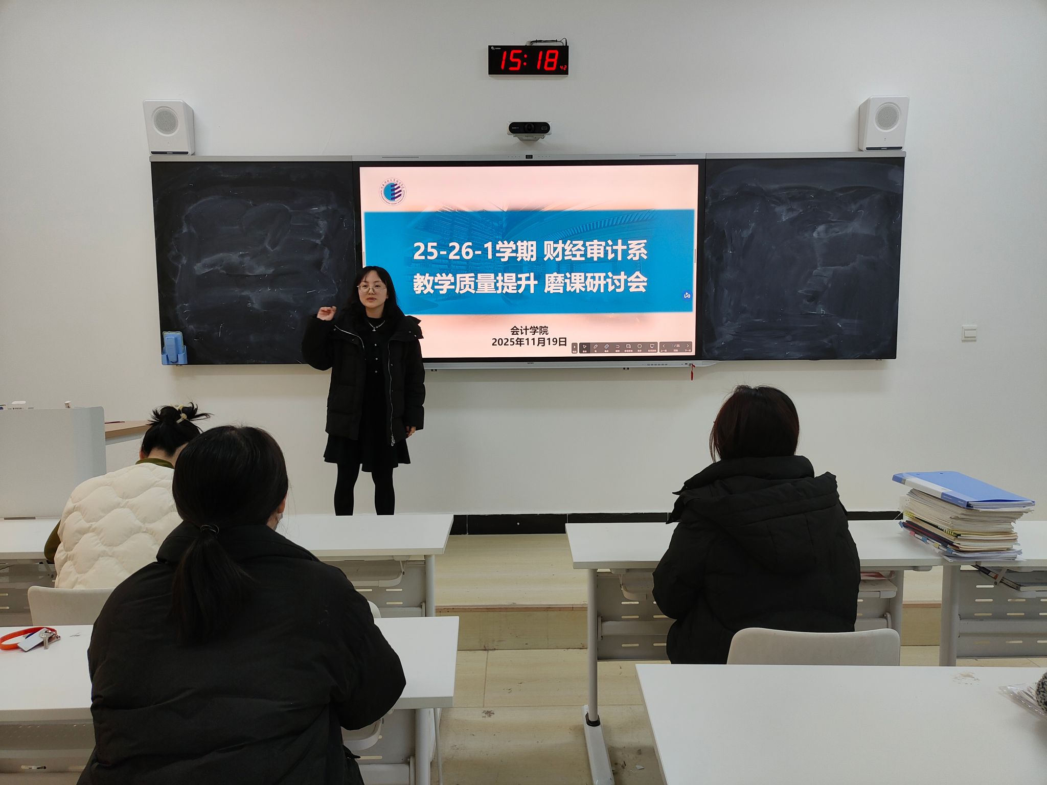 研讨会上,宇文可征、陈庆哲、谭丽娜、解春玉、李燕昭五位教师依次进行授课展示,从专业知识解析到教学方法创新,充分展现了财经审计系教师的教学风采。