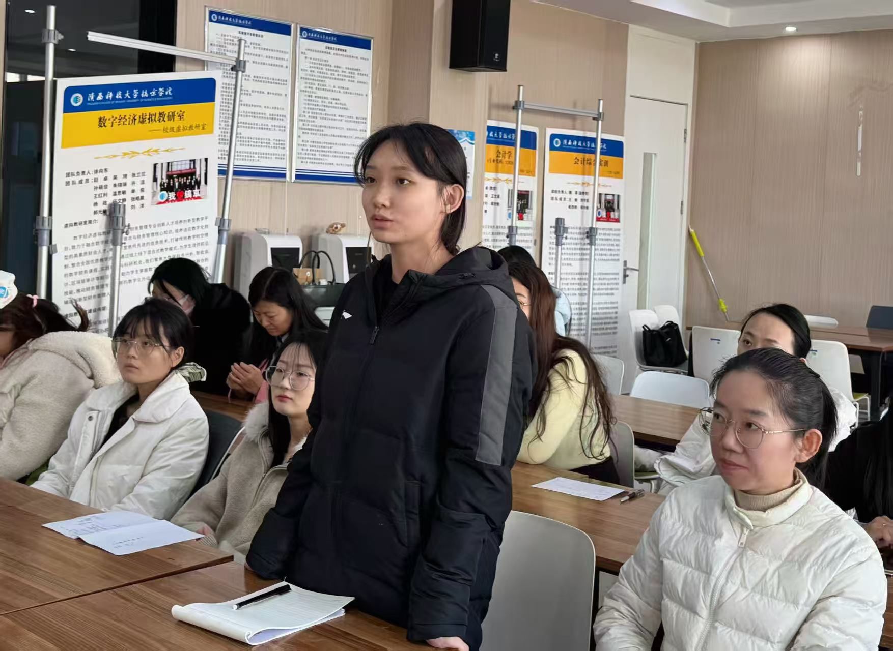 各教研室主任作为系部工作的“中坚力量”,结合各自教研室职责,分别汇报工作成果并提出2026年规划,从“细分领域”为系部发展注入精准动能。大数据与会计教研室主任王文豪从访企拓岗、新生培养、教研室建设三方面复盘成果,并提出2026年工作计划;管理会计教研室主任蒋珩敏聚焦毕业论文工作,总结论文工作的推进进度并提出相关建议;会计实训教研室主任杨曦总结员工竞赛成果与教学优化成效,提出2026年完善竞赛培育体系、推行磨课制度提升教学水平的举措。