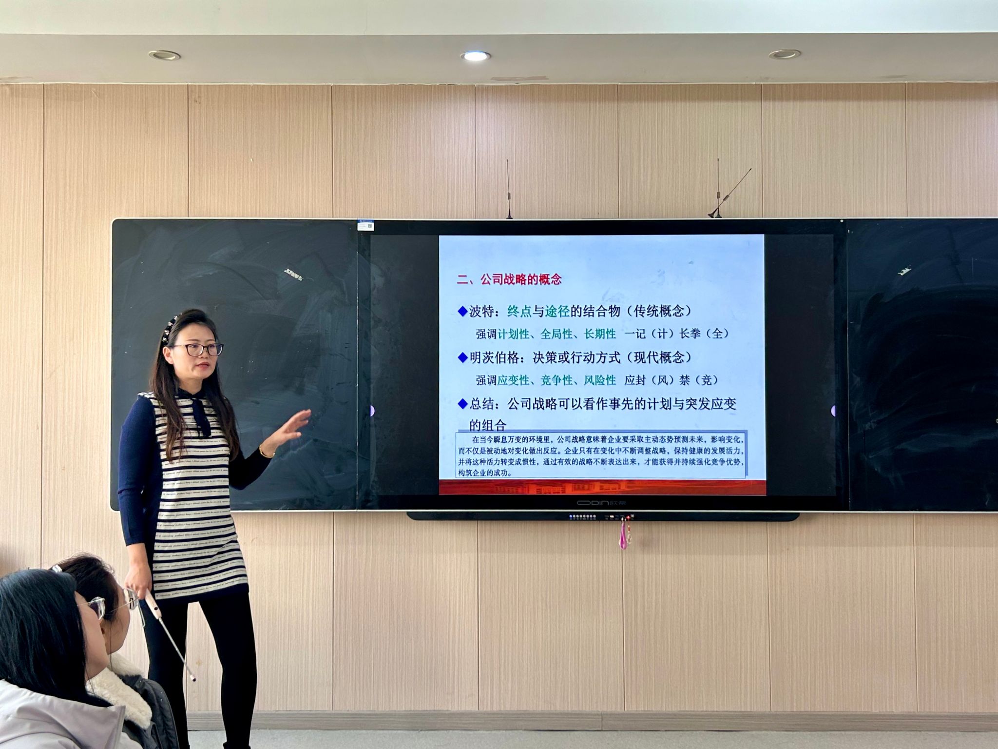 在磨课环节,仲万蕊、张立恒以及宇文可征三位教师依次进行示范讲授,涵盖《高级财务管理》《资本运营》《公司战略与风险管理》等核心理论课程。教师们立足课程人才培养目标,精心设计教学环节,将抽象的理论与上市公司真实案例、行业前沿实践相结合,清晰呈现教学重难点,展现了扎实的专业功底和灵活的课堂驾驭能力。