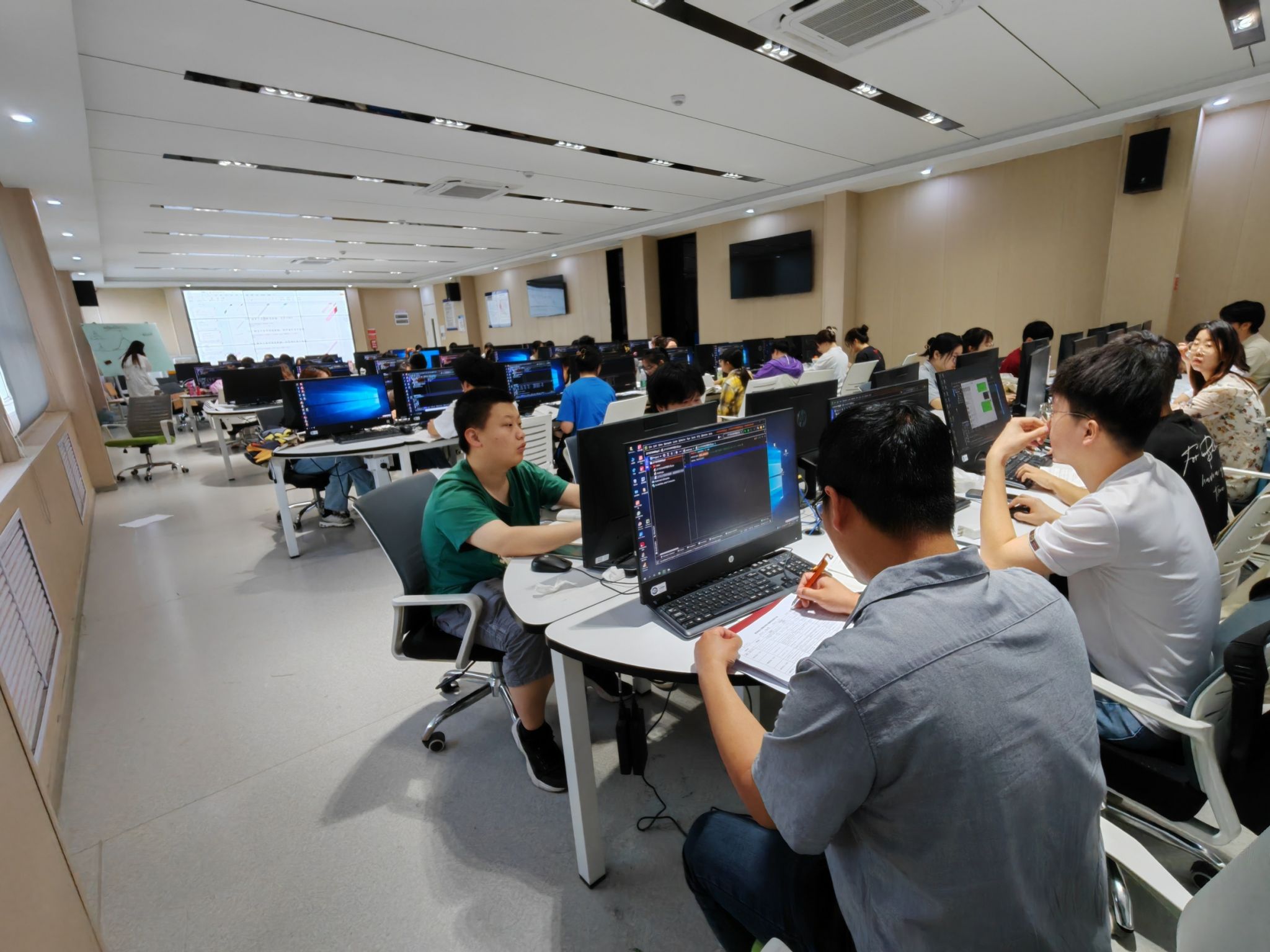 检查过程井然有序,检查期间公司随机从各教研室抽选了部分课程进行了听课抽查,从检查情况来看,师生都能以饱满的精神状态投入到教学和学习中。老师们课前备课充分,讲解透彻,重点突出,体现出良好的课堂教学效果,课后认真答疑,持续跟进,进一步强化教学责任意识。员工按时到课,大部分员工上课专心听讲,积极与老师互动,学习状态良好。