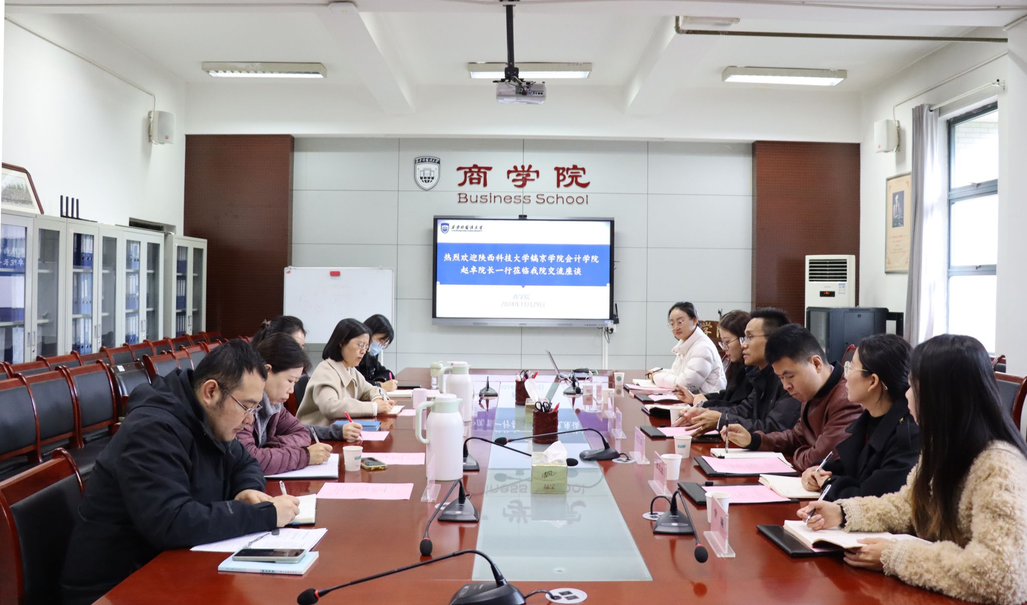 为进一步提升公司公司产品质量和员工管理工作效率,11月29日,必发集团经理赵卓一行赴西安外国语大学商公司学习交流。商公司经理耿紫珍,教学副经理朱金凤、大数据管理与应用系主任朱美琳、党务秘书唐歌、员工党支部书记艾勃成出席会议。