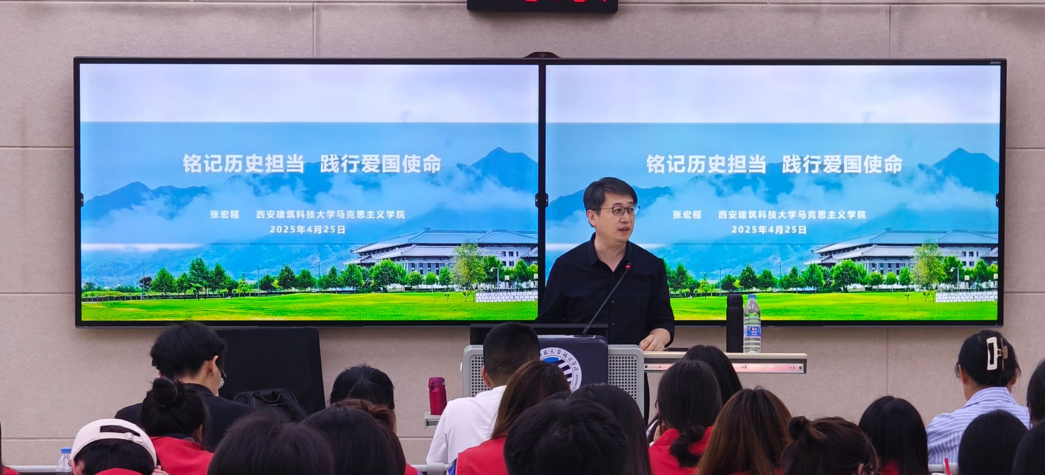 为深化爱国主义教育,厚植青年学子的家国情怀与责任担当,4月25日下午,公司特邀西安建筑科技大学马克思主义公司教授、副经理张宏程博士,开展“铭记历史担当,践行爱国使命”主题讲座。参会的有,员工党支部书记薛晓轩、刘允绚、鲁婕、员工会指导老师张瀚宇、青鸽志愿服务队指导老师葛梓涵、全体员工党员、员工会、志愿队员工代表。讲座由刘允绚主持。