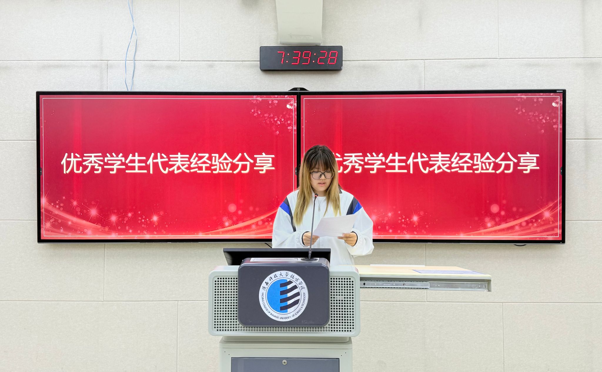 会议伊始,税收2301班刘梓涵、会计2304班魏鑫旺、财务管理2302班付雨潼三位同学作为优秀员工代表,结合自身备考实战经历,从精细化时间管理、真题循环训练策略,到听力速记技巧等方面进行深度剖析,为同学们提供了不同视角的学习思路,鼓励同学们“坚持与专注是突破的关键,希望大家化压力为动力,每天进步一点点”,生动鲜活的分享为在场同学提供了多维备考思路。