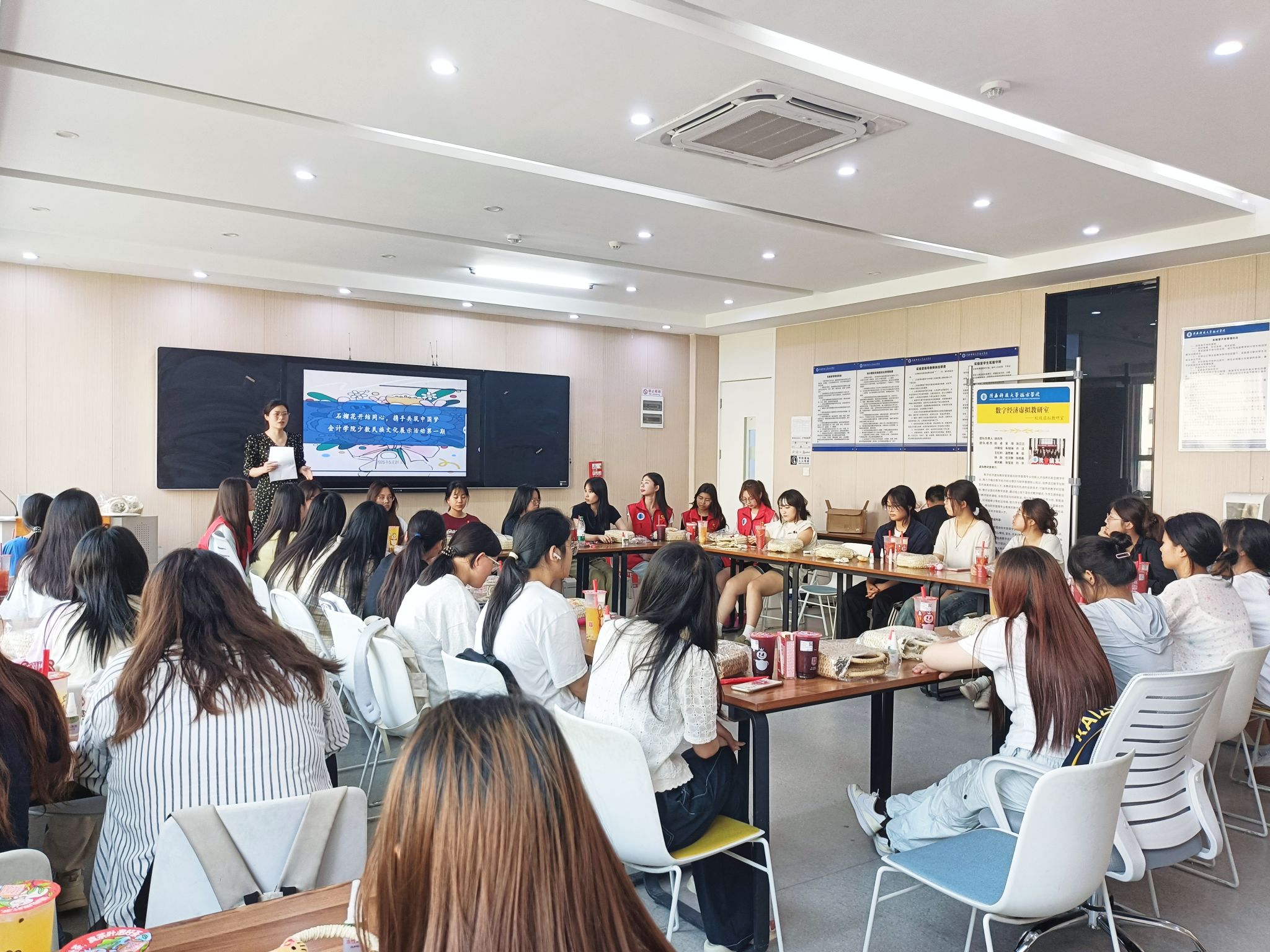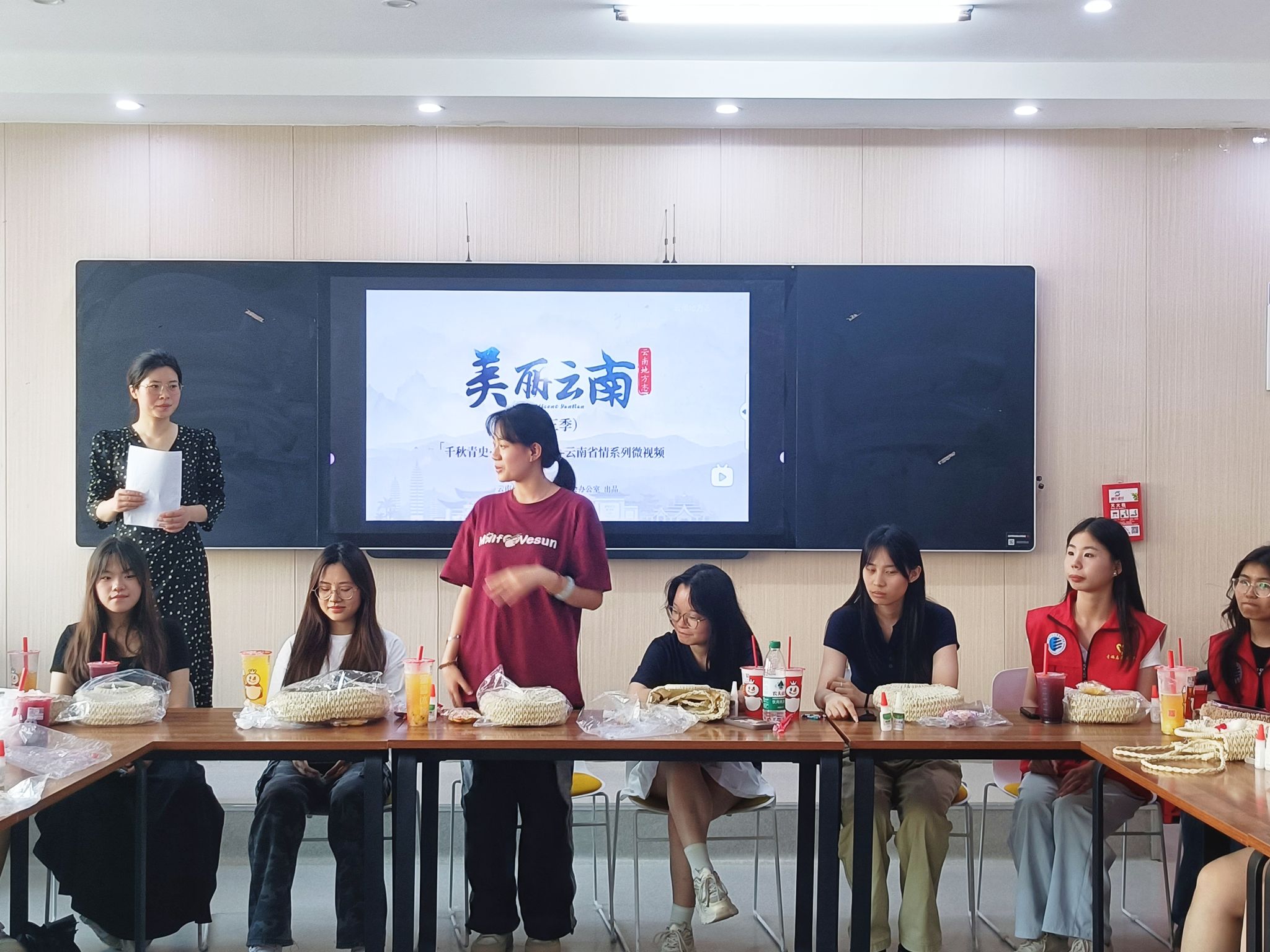“原来白族服饰上的刺绣纹样承载着祈福的寓意!”“三道茶‘一苦二甜三回味’的哲学,像极了人生的缩影!”在随后的讨论环节,同学们争相分享感悟。文化与智慧的碰撞,让现场暖意融融。