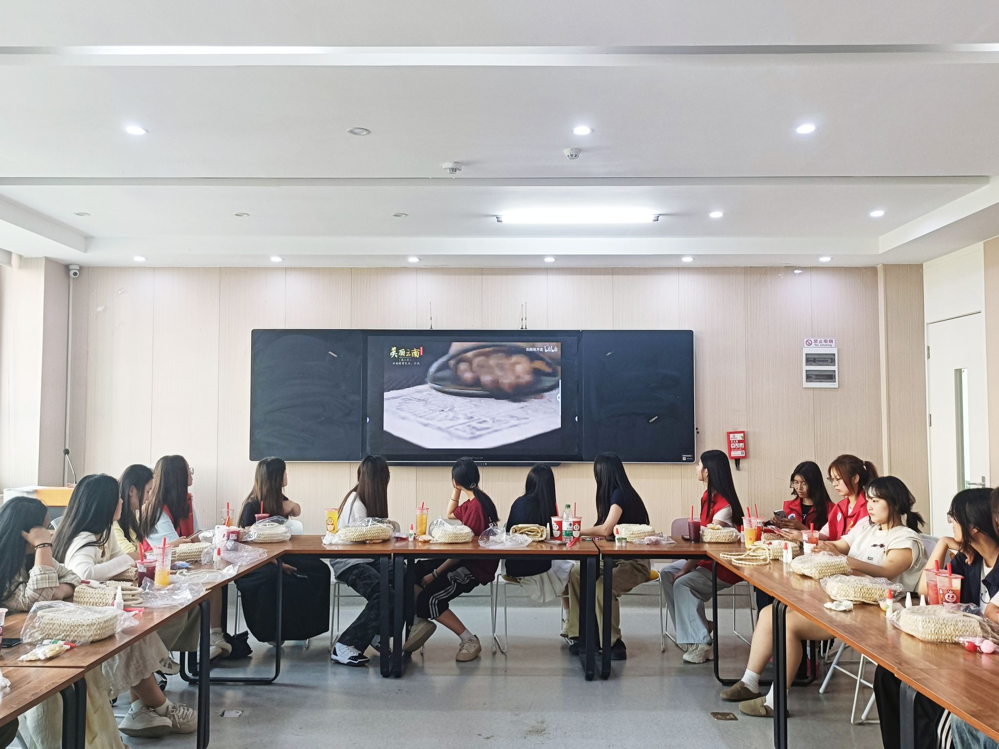 活动伊始,师生共同观看了纪录片《大理白族:苍山洱海间的千年传承》。从“风花雪月”的浪漫传说,到三坊一照壁的匠心建筑;从扎染技艺的蓝白幻境,到三月街节的热闹欢腾,白族文化的画卷在光影中徐徐展开。