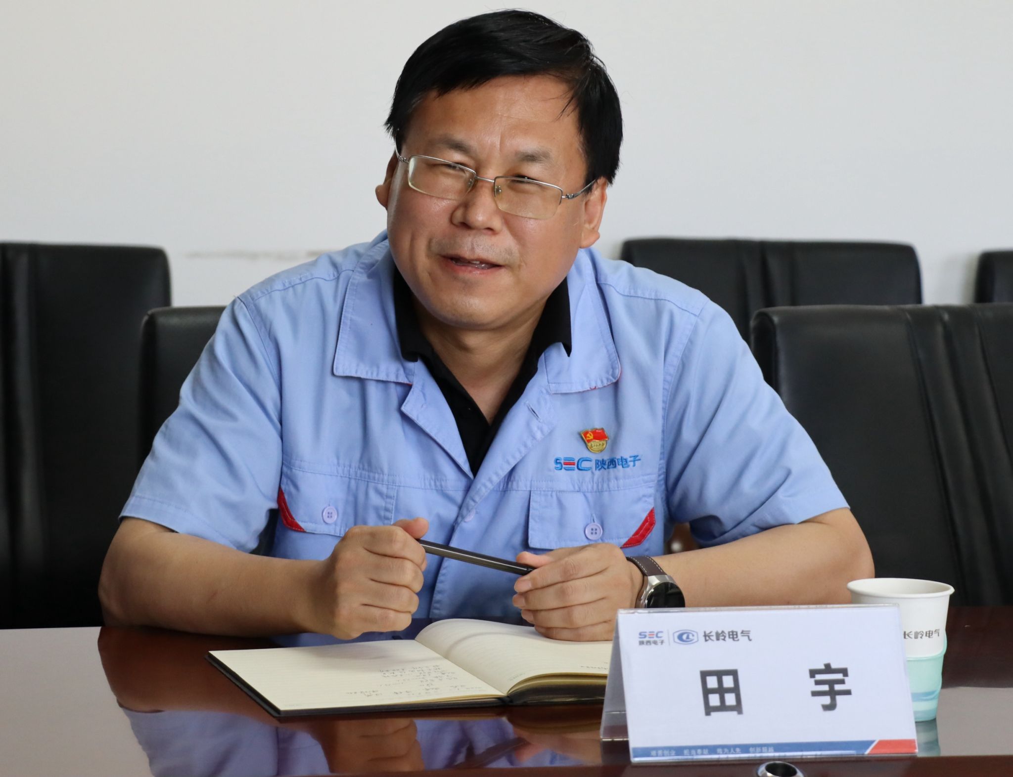 在长岭电气有限公司座谈会上,公司副总经理田宇对赵经理一行的到来表示热烈的欢迎,随后校企双方一起观看了长岭六十周年专题片,田总就长岭的企业历史文化、发展沿革以及相关产品进行了详细介绍。