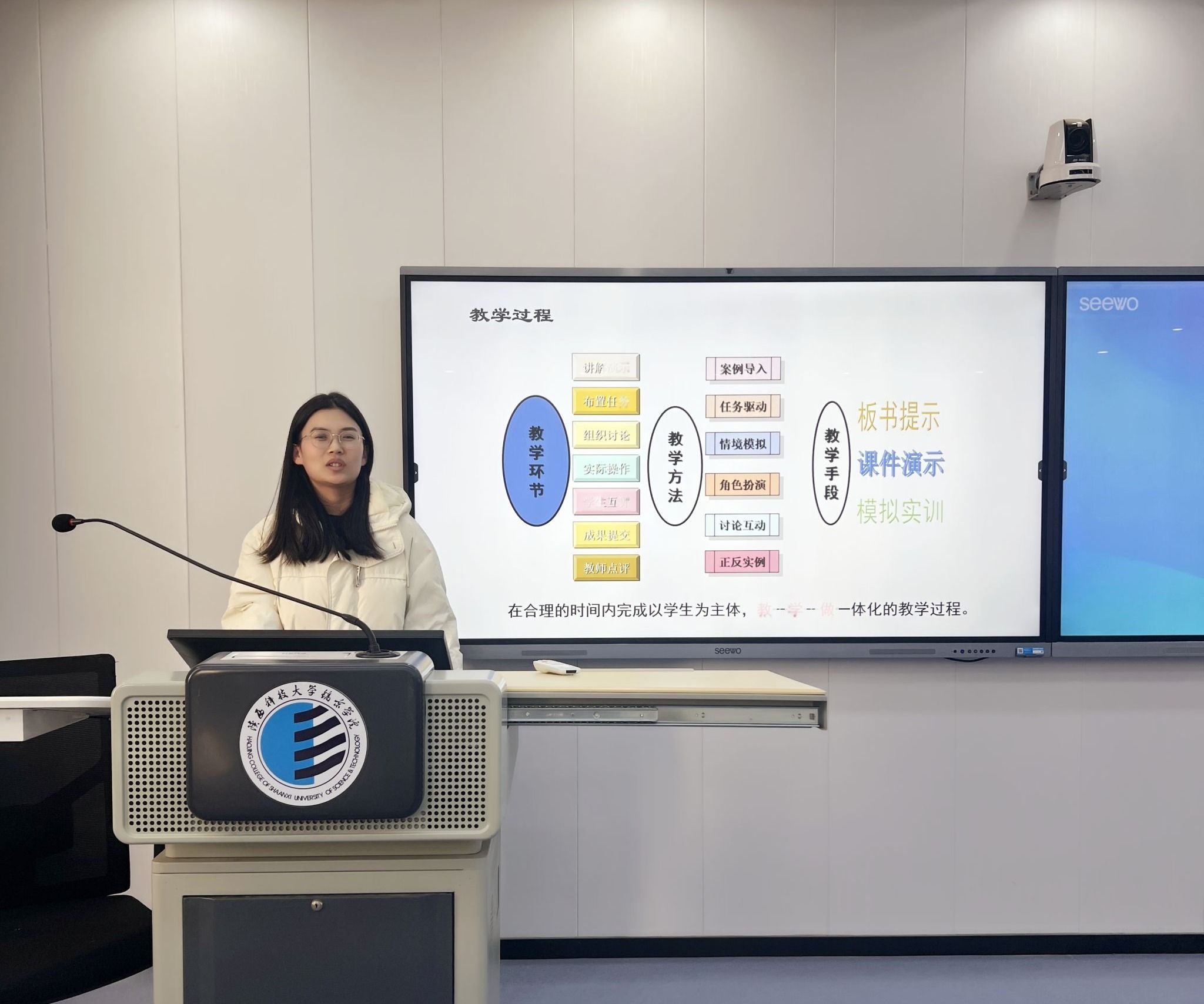 随后,参与说课的教师们依次上台,围绕各自所授课程展开精彩讲解。他们从课程目标、教学内容、教学方法、教学过程以及教学评价等多个方面进行了详细阐述。结合实际案例,生动展示了如何将理论知识与实践应用相结合。教师们不断创新教学方式,有效提升了教学效果,并注重课程思政元素的融入,强调在传授专业知识的同时,注重培养员工的社会责任感和职业道德素养。教师们对课程的深入理解和精心设计,展现了审计系教师的专业扎实素养和良好的教学风貌。