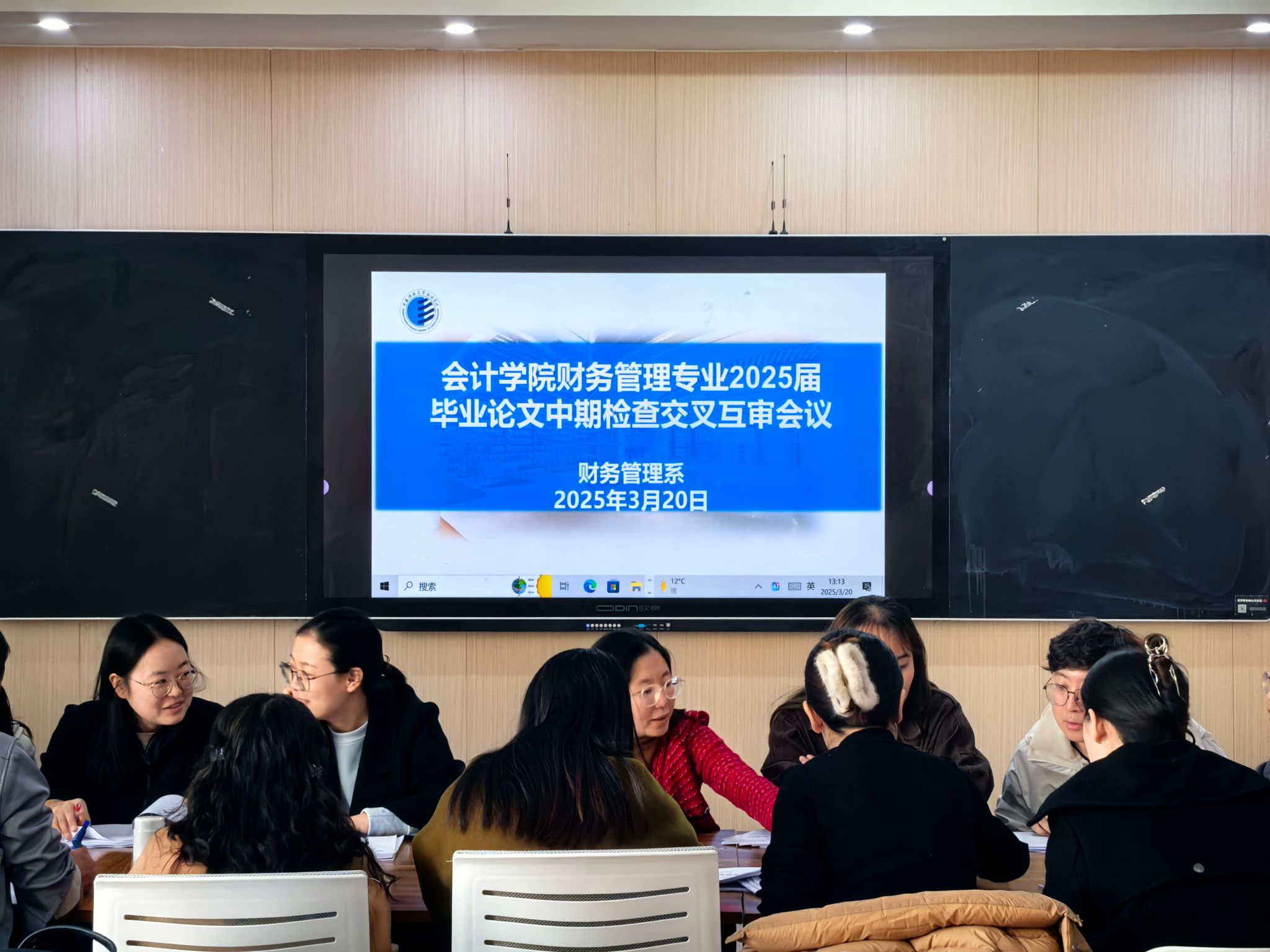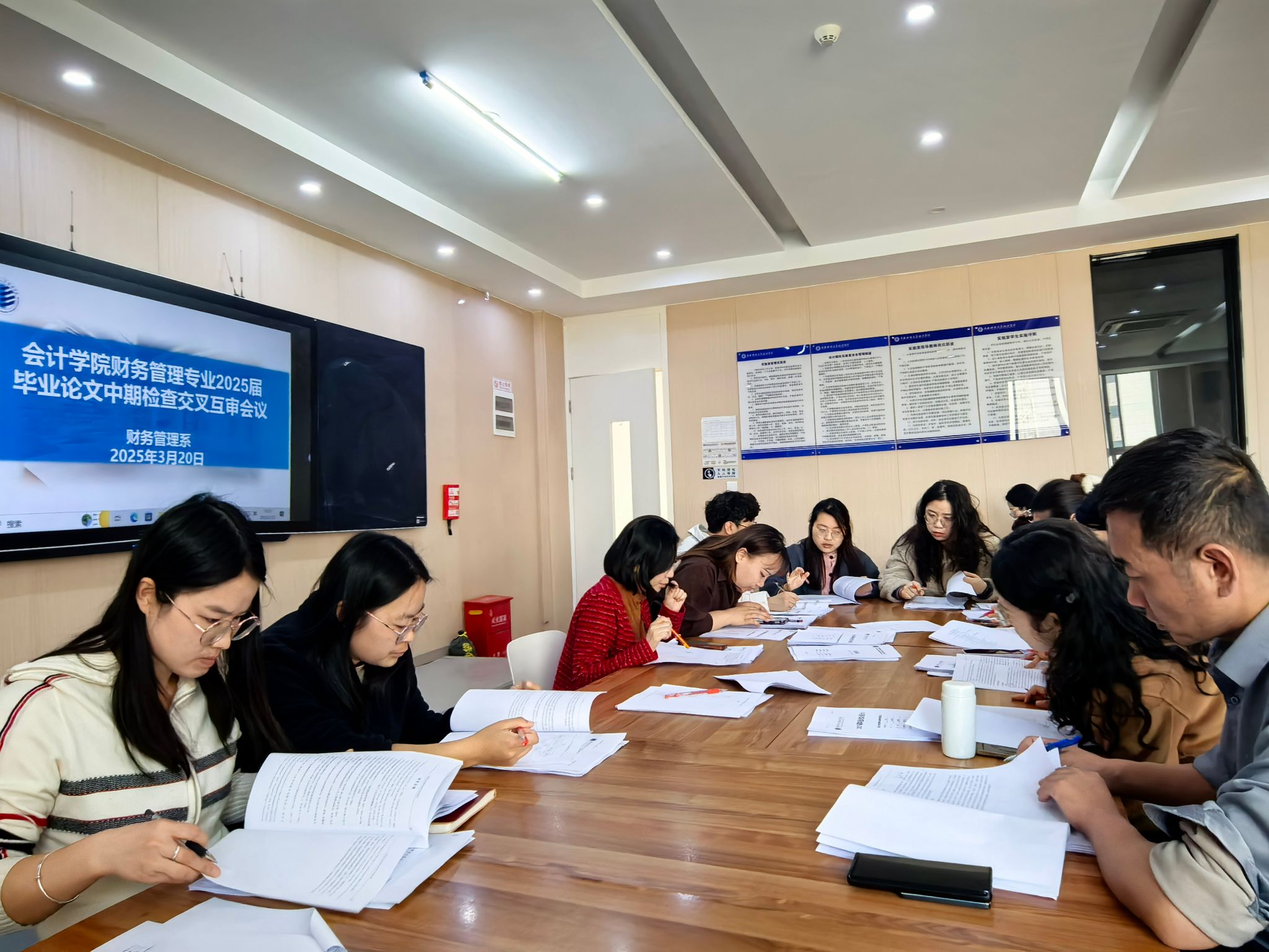 3月20日,在实验楼312教室召开了2025届毕业论文中期检查交叉互审会议,会议上各位指导老师们对非本人指导员工的毕业论文进行评审,并提出修改意见。