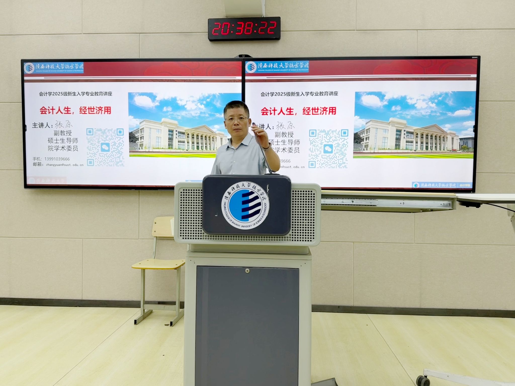 杨君岐老师以“会计学习的实务导向与能力要求”为题作专题授课。杨老师强调,会计学习应紧密对接真实业务流程,将会计准则、核算方法、报表编制等知识落实到具体业务场景,避免停留在教材与记忆层面。他提出能力建设重点:一是规则理解与合规判断能力,确保业务处理符合准则与税法要求;二是数据分析与报告解释能力,能够基于财务信息支持管理决策;三是持续学习与工具应用能力,主动掌握大数据、智慧财务与信息化系统筹新技术,以适应财务数字化转型下的岗位需求。同时,杨老师对本学期学习安排、课程考核方式、课堂纪律与作业规范提出了明确要求。