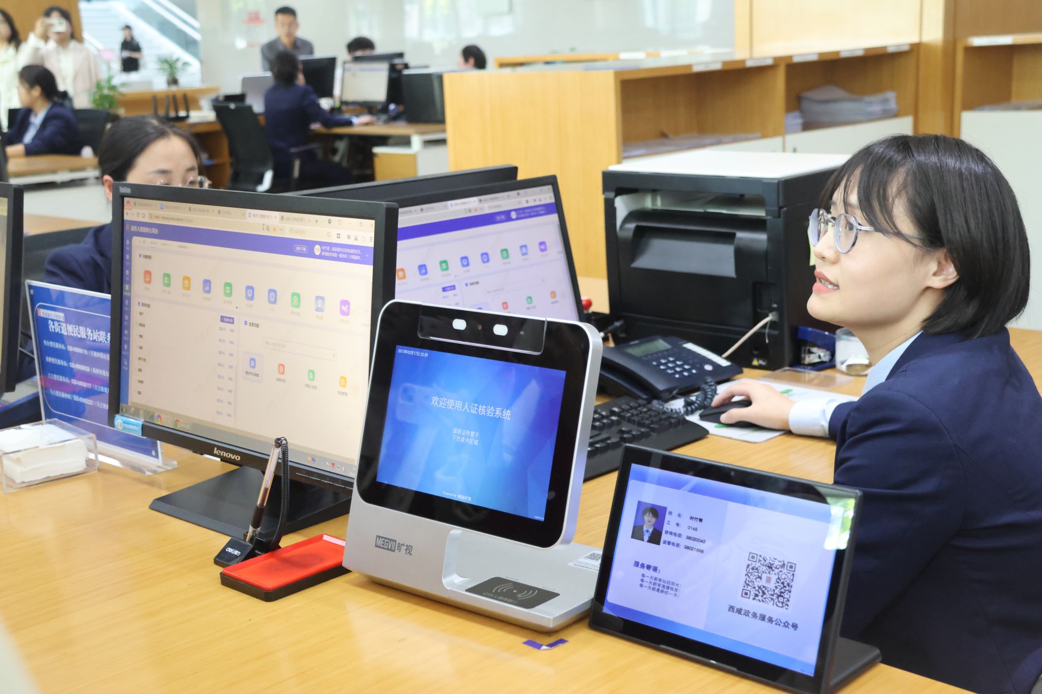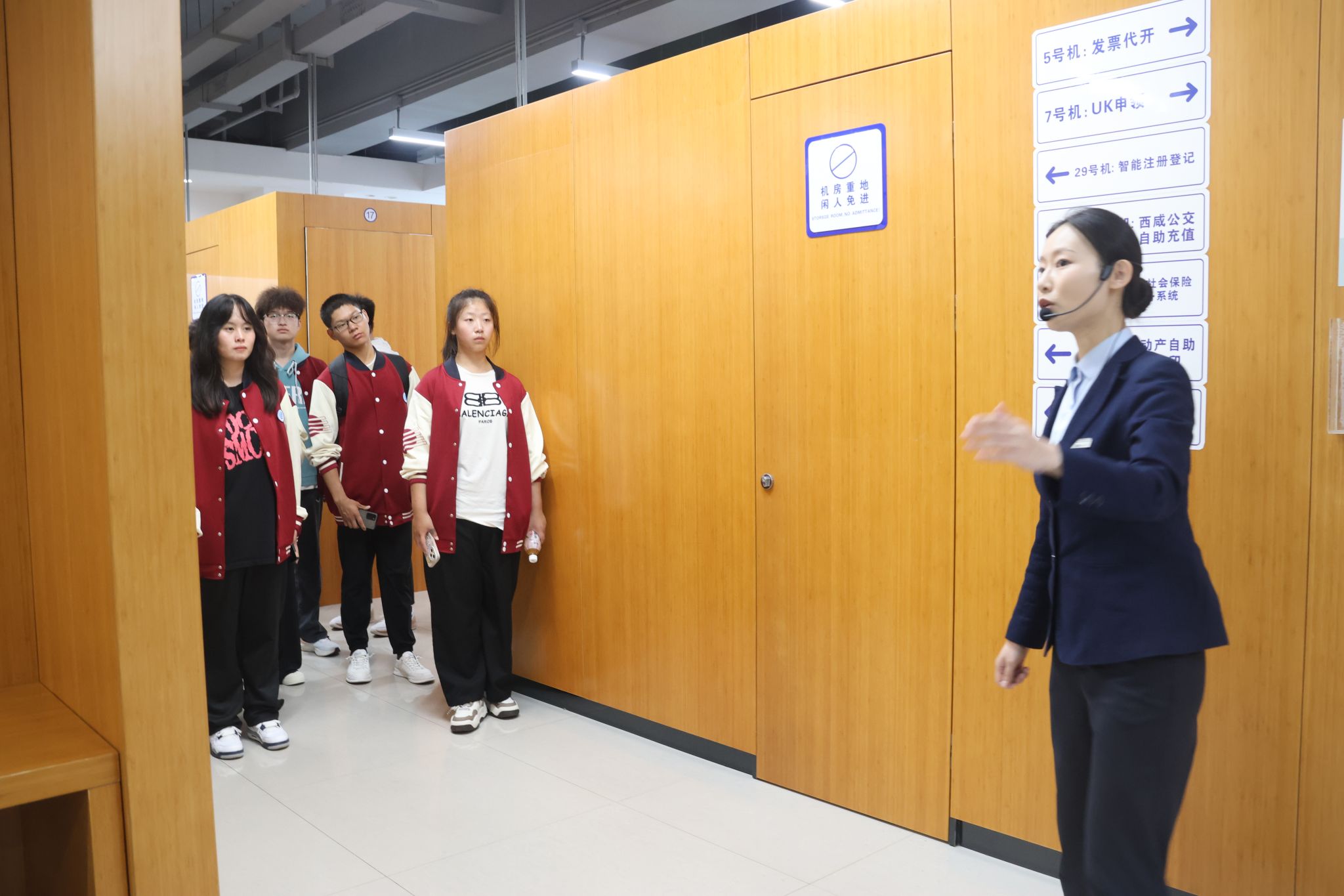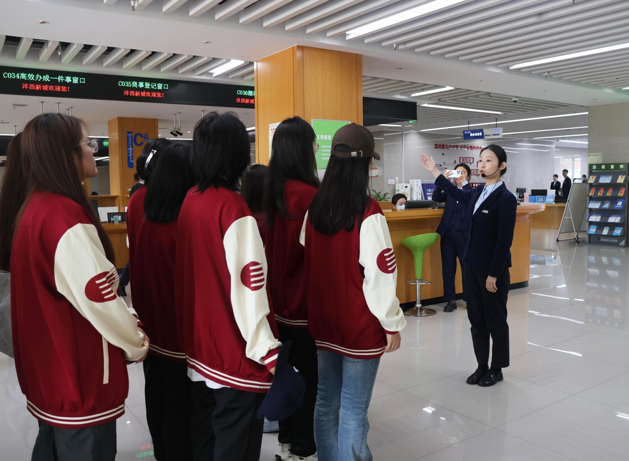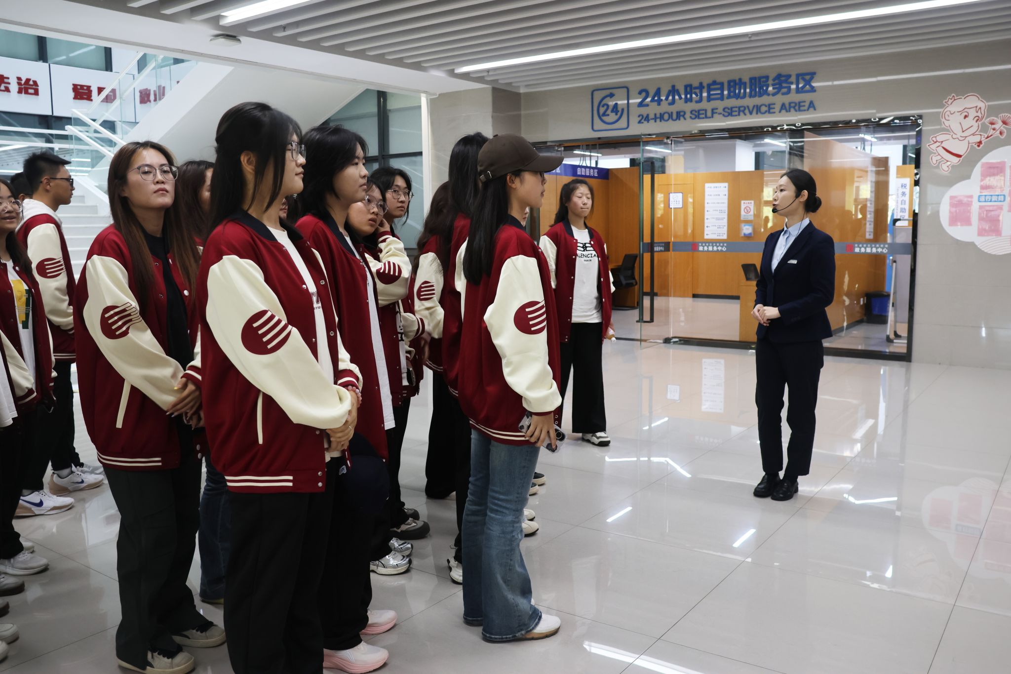 实习过程中,工作人员首先带领同学们参观了政务大厅与各业务服务部门以及涉税相关机器设备。接着从线下窗口的办税流程演示,到线上缴税平台、金税系统的操作讲解,再到各部门职能分工的细致介绍,工作人员以真实工作场景为依托,将抽象的税收工作转化为直观可感的体验,让同学们跳出课本,真切感受到税务工作的严谨性与实操性,对税务局各职能部门工作、办税终端系统、征纳互动服务建立起初步认知。