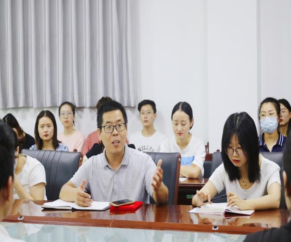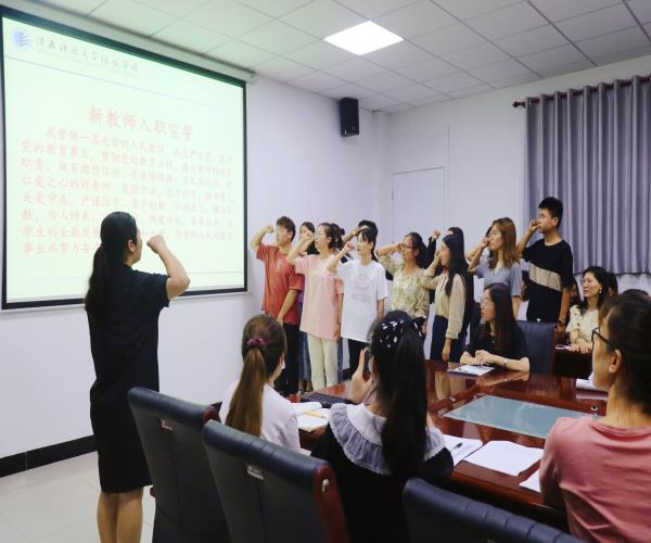 大会第一项,由王颖老师宣读优秀教师、班主任辅导员受表彰人员名单并由王晓民书记颁奖。第二项,由教师代表汪娇老师进行师德报告。汪娇老师,她坚持把立德树人作为根本任务,培养德智体美劳全面发展的社会主义建设者和接班人。除此之外,汪老师还提出要加强员工安全教育,始终把员工的安全稳定工作放在首位。最后,汪老师表示会对每一位员工倾尽所能,全力以赴,不辜负校领导的希望和家长的信任。第三项,在高凤老师的带领下新入职教师进行宣誓,新教师代表党婧雯老师发言。党老师表示,能以一个新的身份重新回到母校是无比高兴和自豪的,会克服困难尽快适应新角色,努力成为一名有理想信念、有道德情操、有扎实学识和有仁爱之心的“四有老师”。