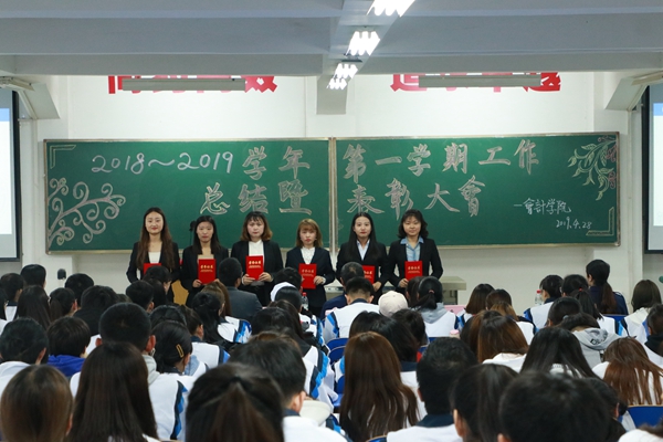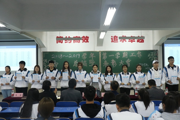 大会第四项,由王颖老师宣读《关于表彰2018-2019学年第一学期班级团体奖项以及各班班费奖励情况的通知》并颁发奖状。王老师强调班级团体奖代表着整个班级的精神风貌,是班级荣誉的象征,更是对班级的一种鼓励。同时希望受到表彰的班级再接再厉,在今后的学习中不骄不躁,率先垂范,取得更好的成绩。
