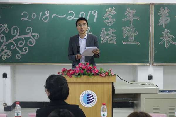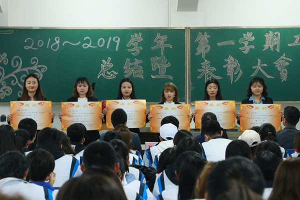 大会第五项,由鹿龙老师宣读《关于表彰2018-2019学年第一学期优秀教师的通知》并颁发证书。鹿老师对班主任辅导员德育工作、组织管理能力等方面给予了肯定,并对公司优秀班主任辅导员一年来所取得的成绩表示热烈的祝贺。