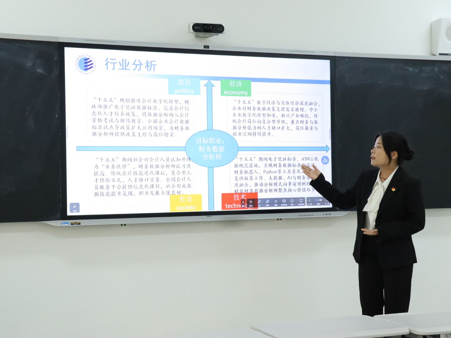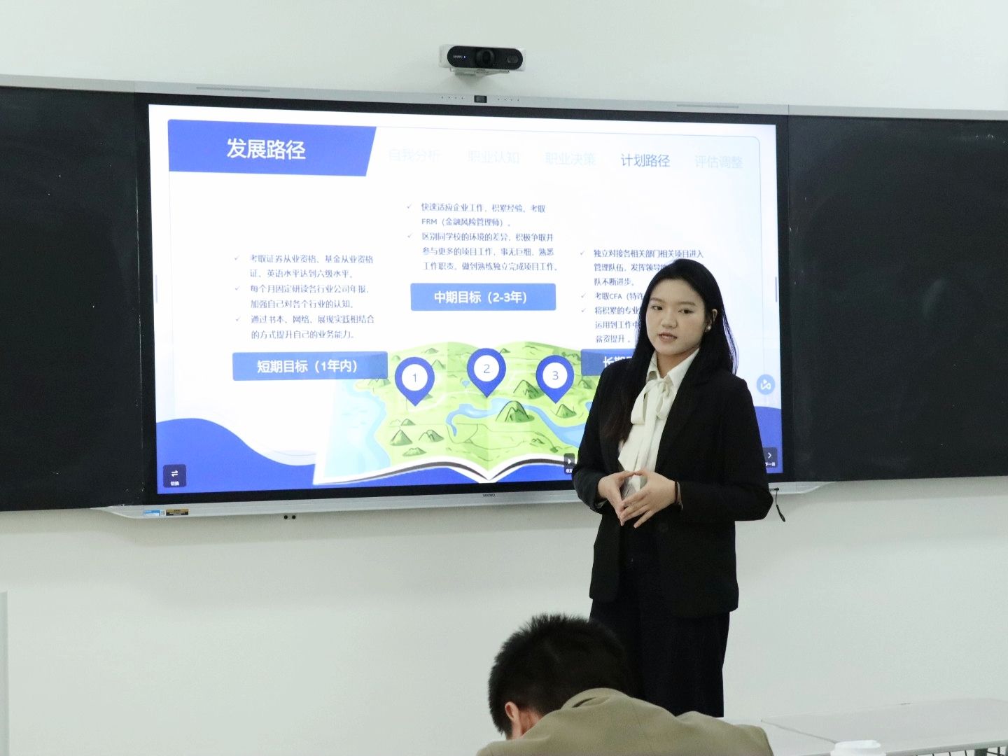 就业赛道聚焦“精准定位·职业启航”,选手们立足会计、审计、税务、财务分析等细分岗位,通过行业调研、岗位分析、自我评估,制定了清晰的短期求职计划与长期职业发展目标。部分选手结合大数据、人工智能在财会领域的应用,瞄准“数字化会计”“智能审计”等新兴岗位,从简历优化、实习积累、面试技巧等方面展开详细规划,展现了对行业需求的精准把握和扎实的职业准备。