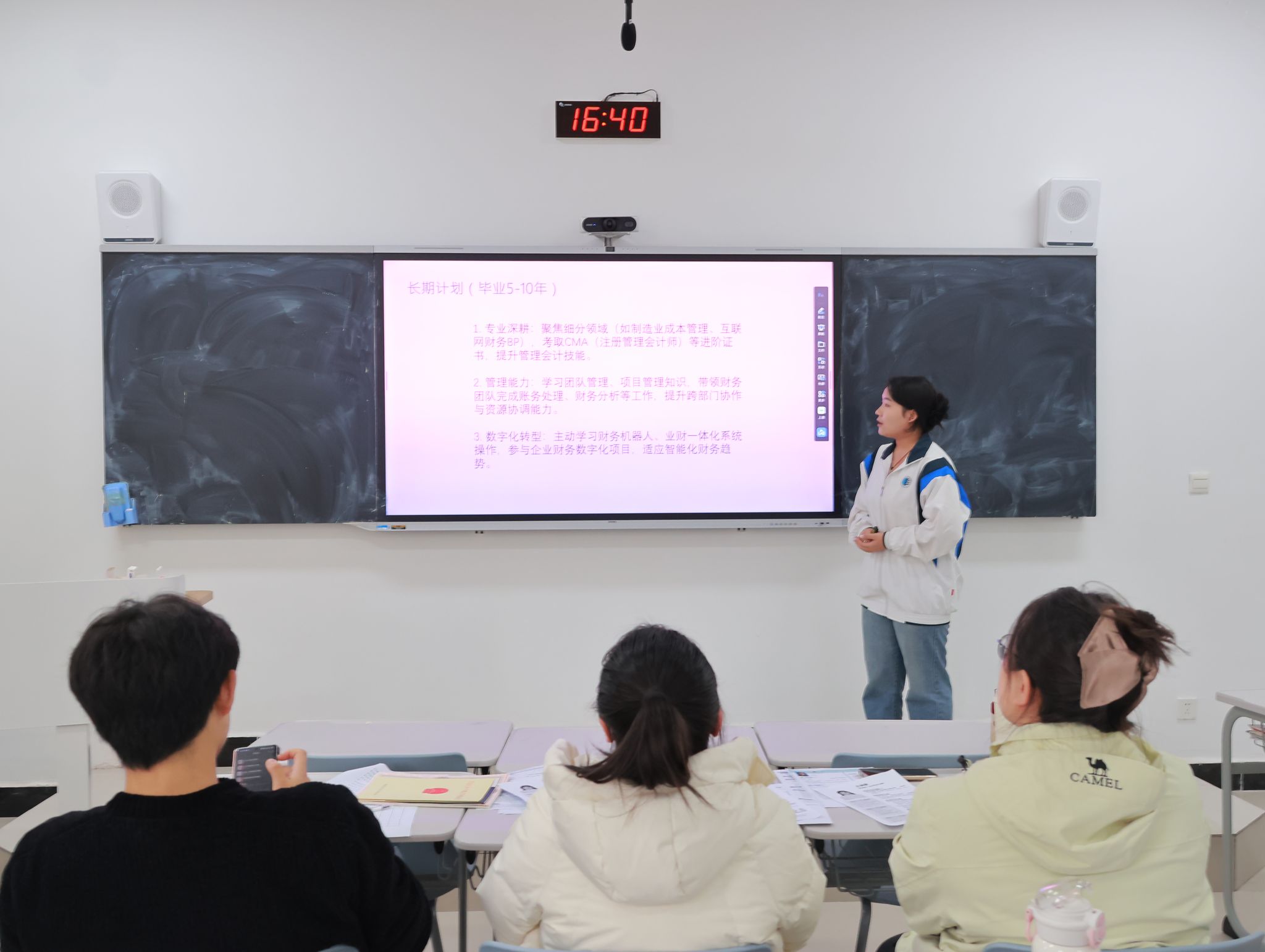 成长赛道以“学业精进·能力筑基”为核心,选手们围绕专业学习、技能提升、实践积累等维度,分享了从夯实会计理论基础到考取专业证书,从参与学科竞赛到投身科研创新的成长蓝图。他们结合会计行业数字化转型趋势,提出“理论+技能+创新”的成长路径,展现了新时代财会学子主动适配行业发展的前瞻意识与进取精神,赢得评委对其规划科学性与可行性的高度认可。