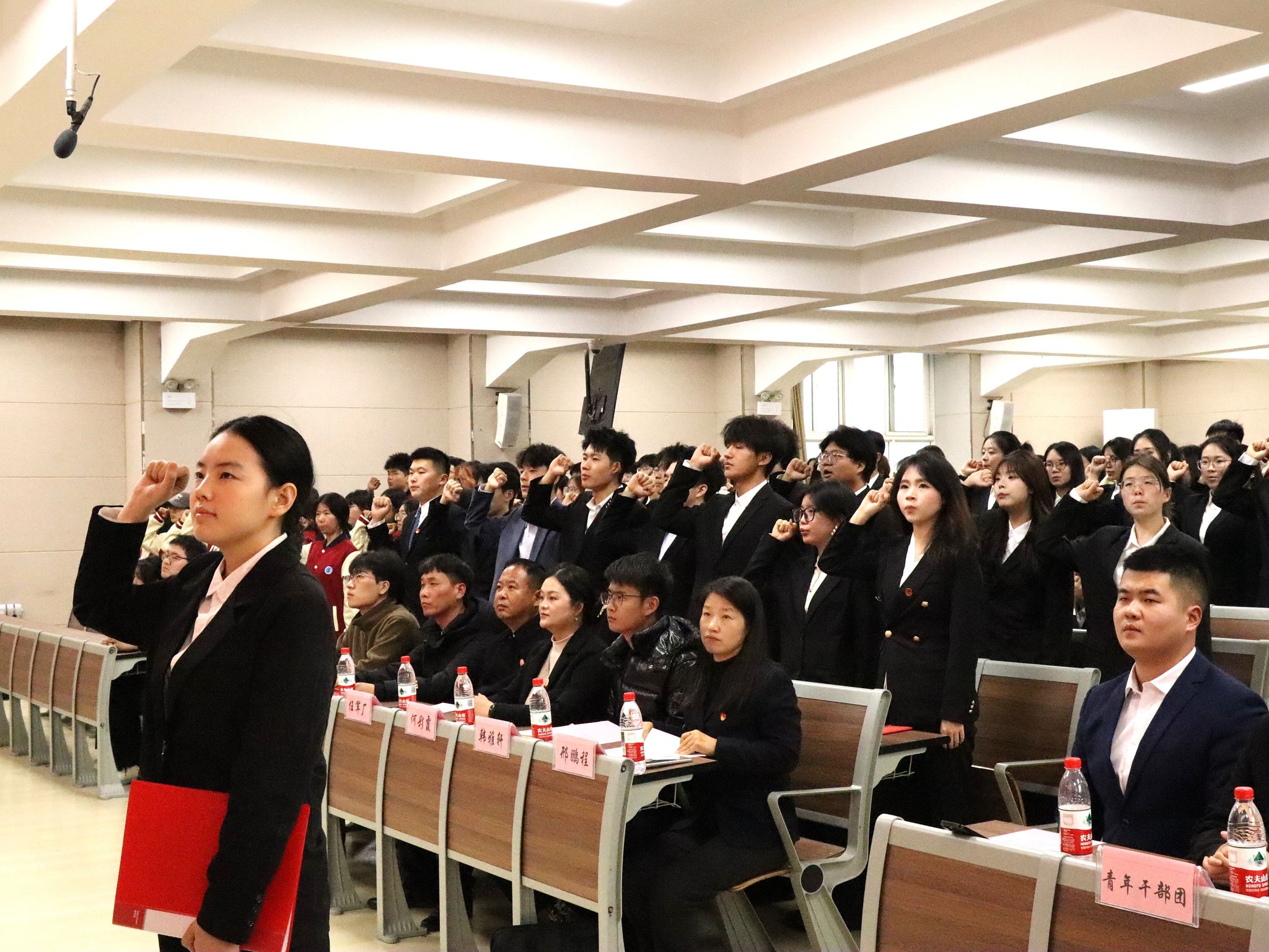 在全场人员的共同见证下,全体志愿者起立,高举右拳,庄严重温志愿者誓词:“我愿意成为一名光荣的志愿者……”铿锵有力的誓言回荡在报告厅内。