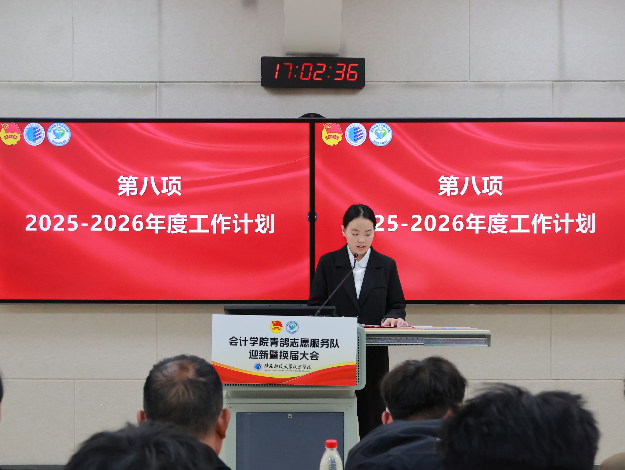 承前启后,继往开来。新一届服务队主席侯萍阳立足过往成果,发布了 2025-2026年度工作计划。未来一年,服务队将聚焦“专业化、品牌化、常态化” 发展目标重点开展工作,一是不断提升志愿服务的针对性与实效性;二是完善志愿者培训体系,增强团队专业服务能力;三是扩大志愿服务覆盖面,让志愿之光照亮更多角落。