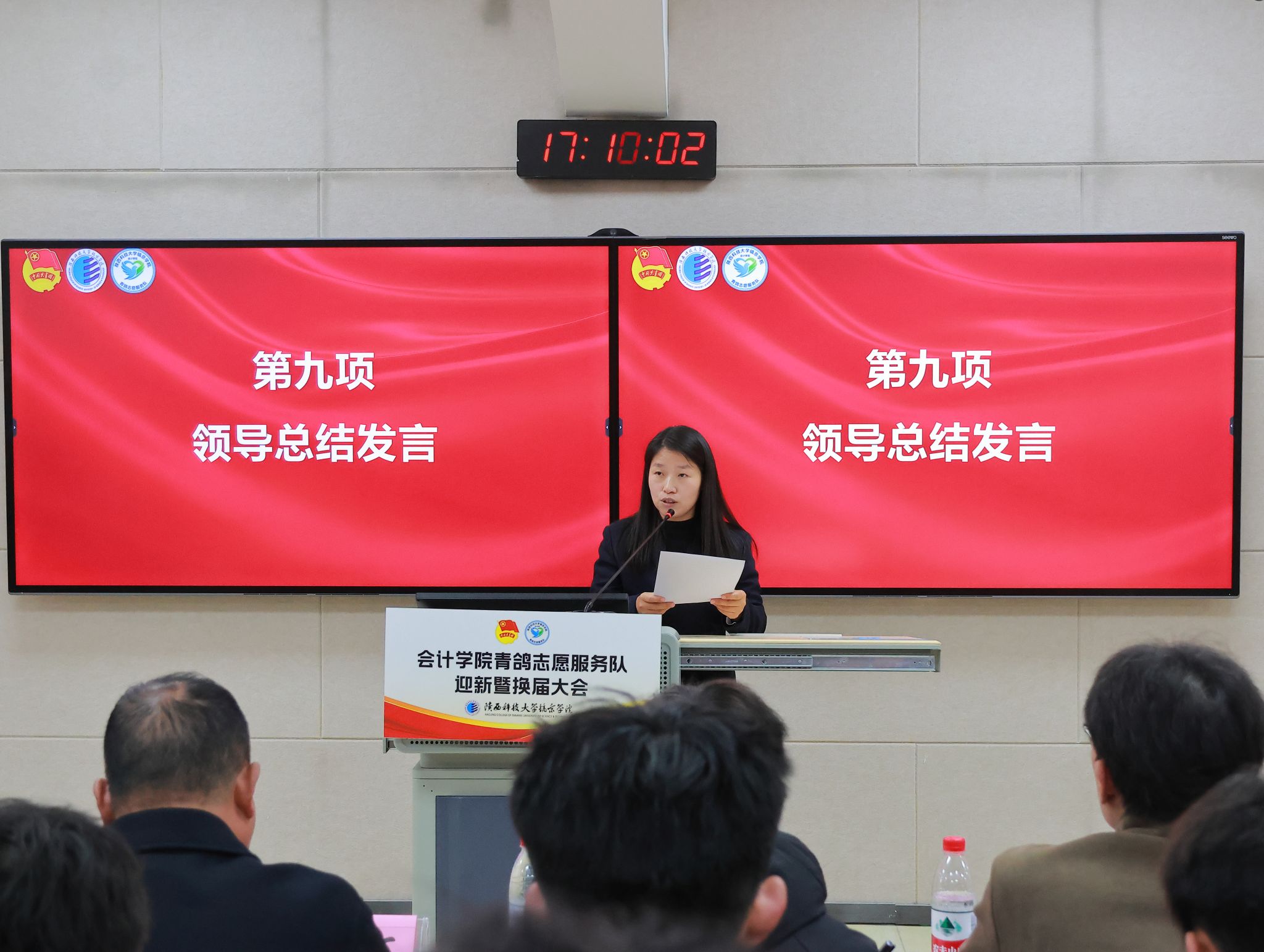 最后,韩雅轩副经理作总结讲话。她首先对过去一年志愿服务队取得的成绩表示肯定,向辛勤付出的志愿者们与长期支持公司公益工作的咸阳慈善协会表示感谢。她指出,志愿服务是践行社会主义核心价值观的重要载体,也是培养员工社会责任感、提升综合素养的重要途径,希望青鸽志愿服务队以换届为新起点,坚守志愿初心,创新服务模式,打造特色品牌;希望全体志愿者在服务他人、奉献社会的过程中增长才干、锤炼品格。公司也将持续为志愿服务工作提供支持保障,推动志愿服务事业行稳致远。