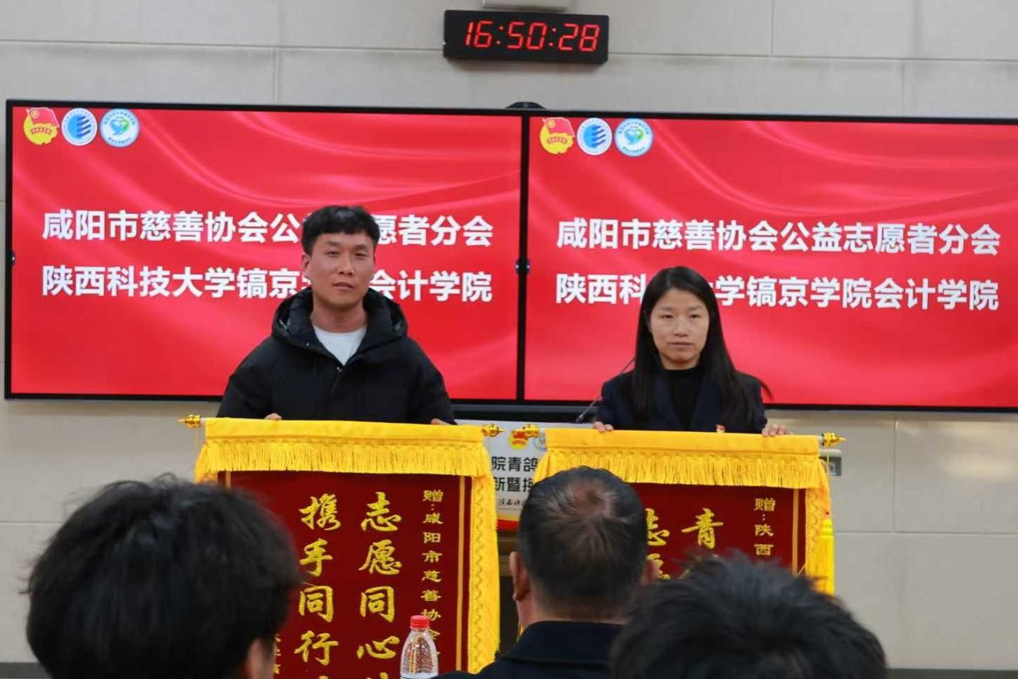 活动现场,王鹏会长代表协会向必发集团赠送“青鸽展翅传温情,志愿同行践使命”锦旗,感谢学经理期以来对公益事业的大力支持与志愿服务队的突出贡献;韩雅轩副经理代表公司回赠“志愿同心传大爱,携手同行暖世间”锦旗,致敬协会在公益领域的引领作用与多方协作的深厚情谊,双方以锦旗为媒,凝聚起校企联动、共促公益的强大合力。