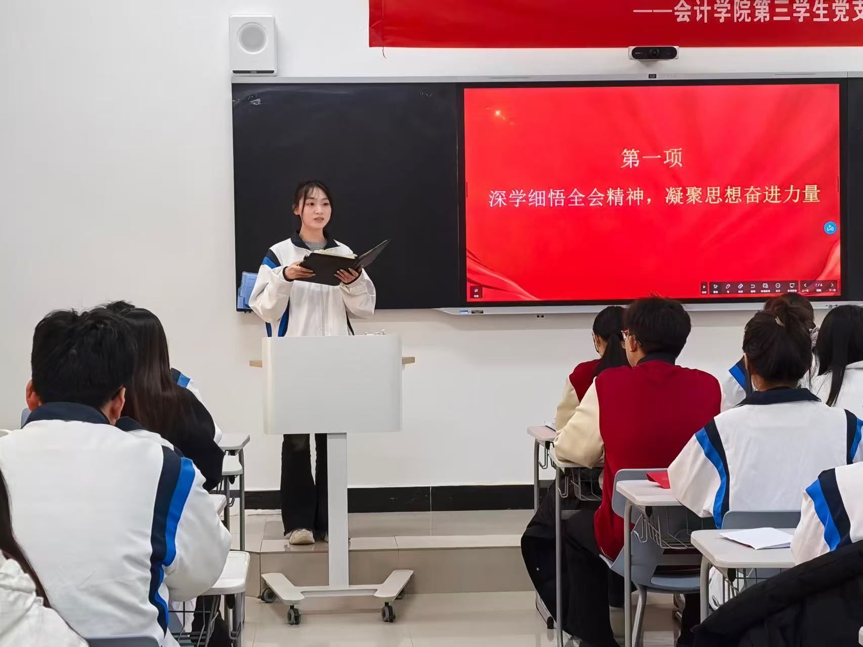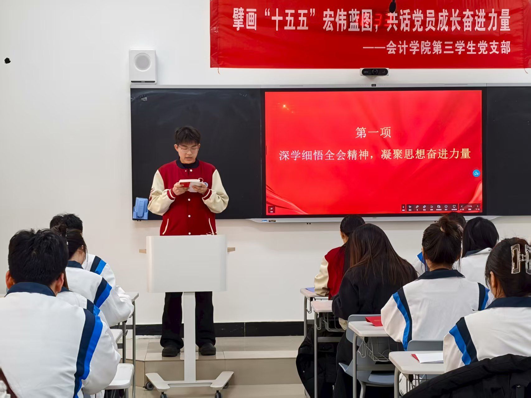 为深入学习贯彻党的二十届四中全会精神,引导党员将个人成长融入国家发展大局,同时强化诚信担当意识,12月29日,必发集团第三员工党支部在教学楼308组织开展“擘画‘十五五’宏伟蓝图,共话党员成长奋进力量”主题教育活动。全体党员通过专题学习、未来展望、互助共建等形式,凝聚奋进共识,激发责任担当。