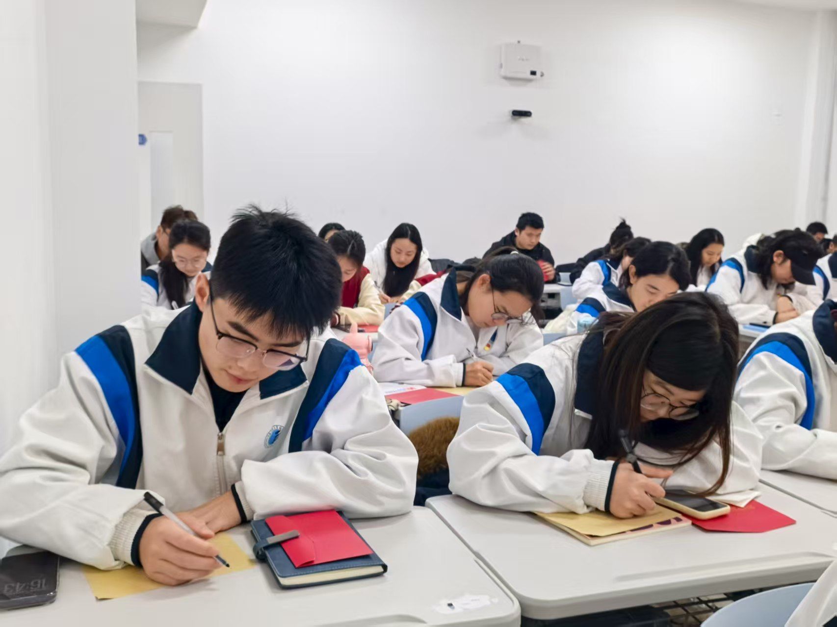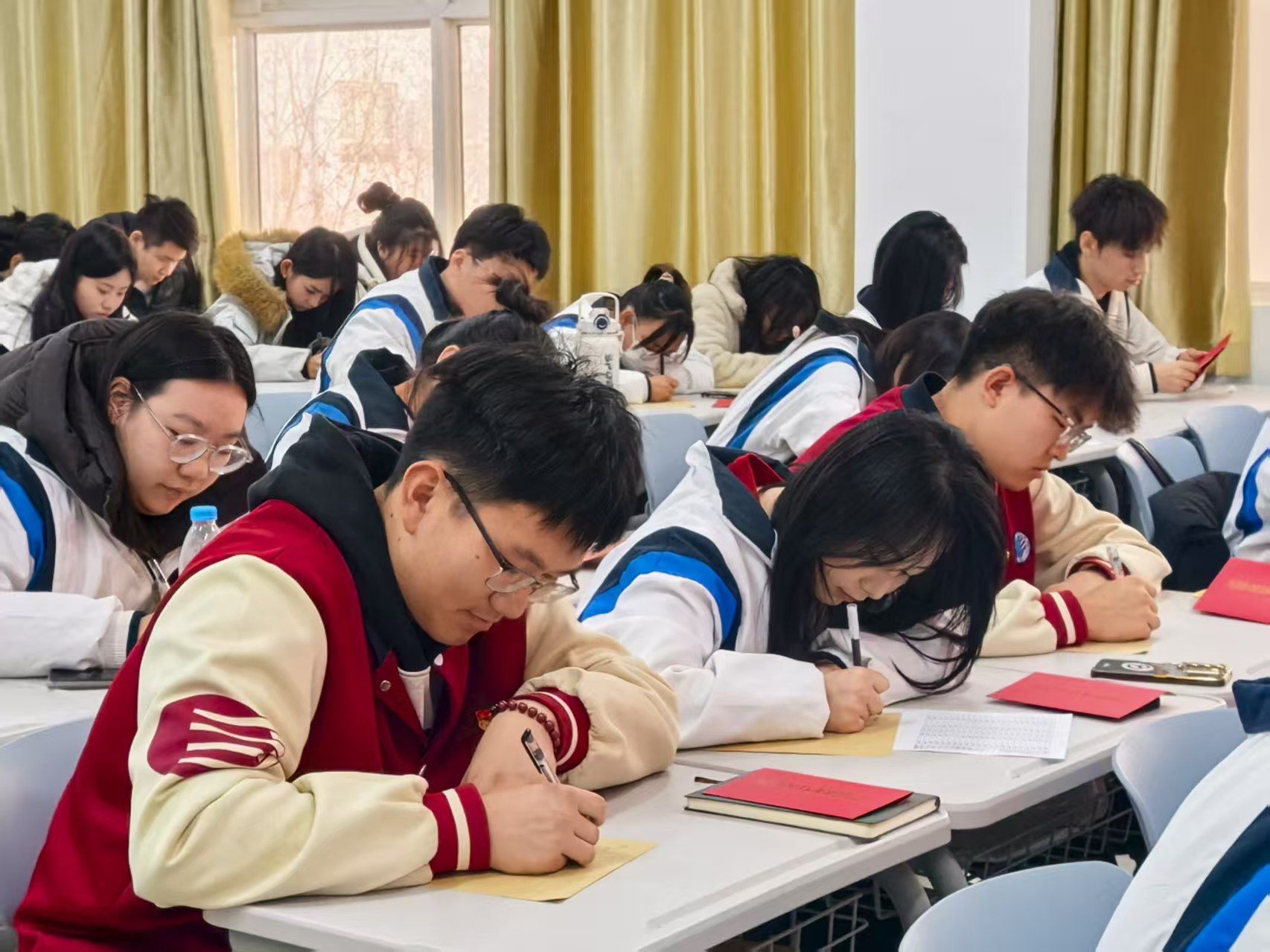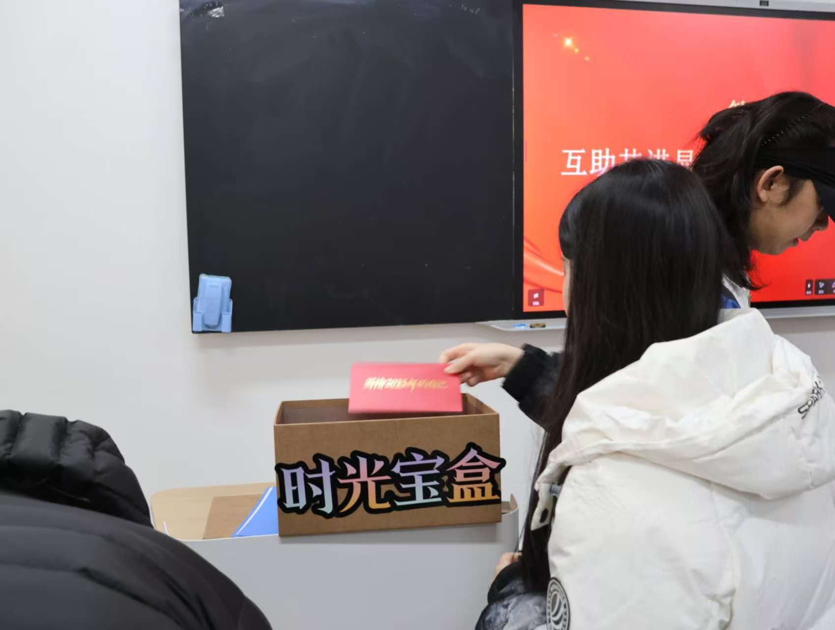 第二阶段,“写给2035年的信”环节掀起情感热潮。党员们伏案执笔,将对未来的无限期许凝于笔端;落笔封缄后,大家郑重地将信件装入信封,投入党支部特制的“时光宝盒”。这份承载初心与憧憬的信笺,将在全体党员毕业离校之时,物归原主、启封回望。