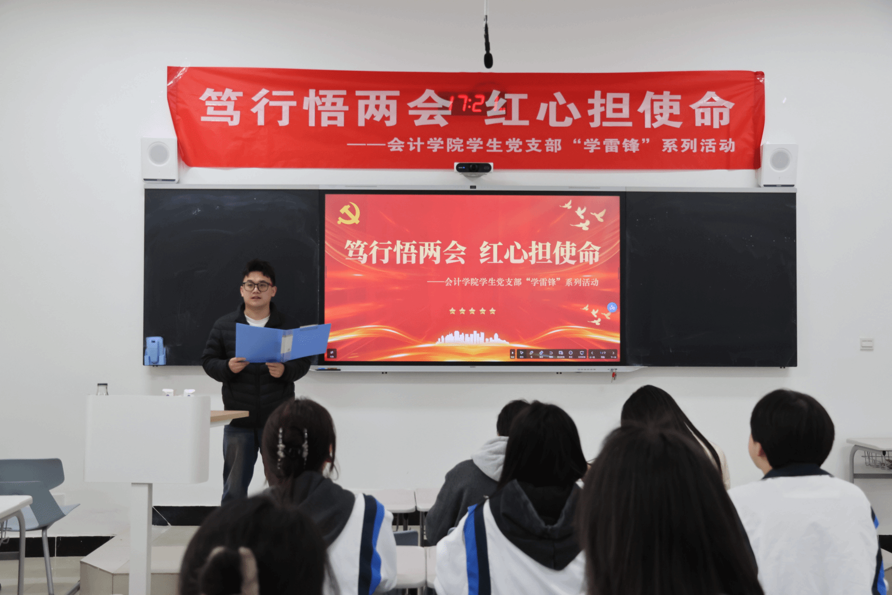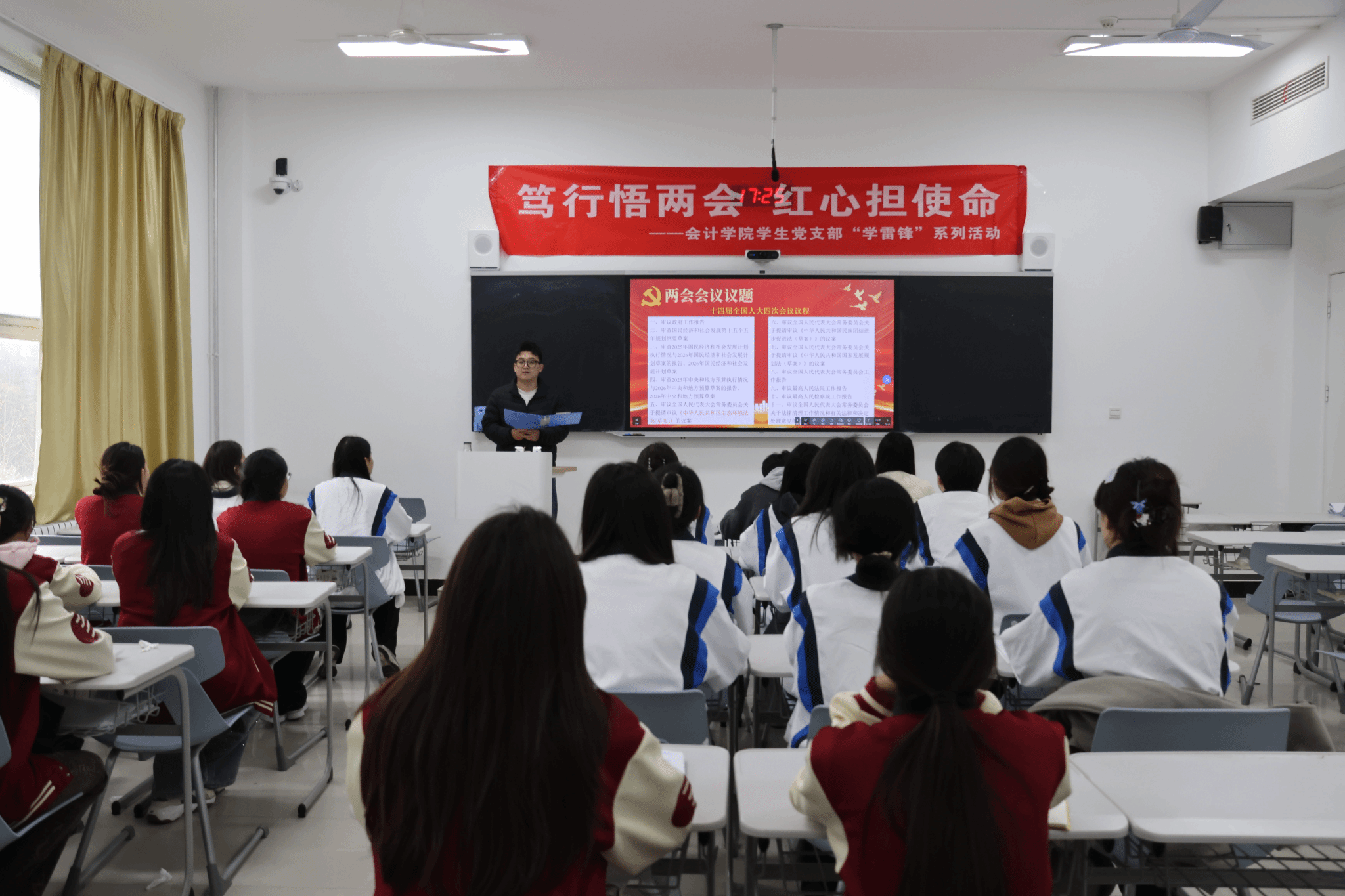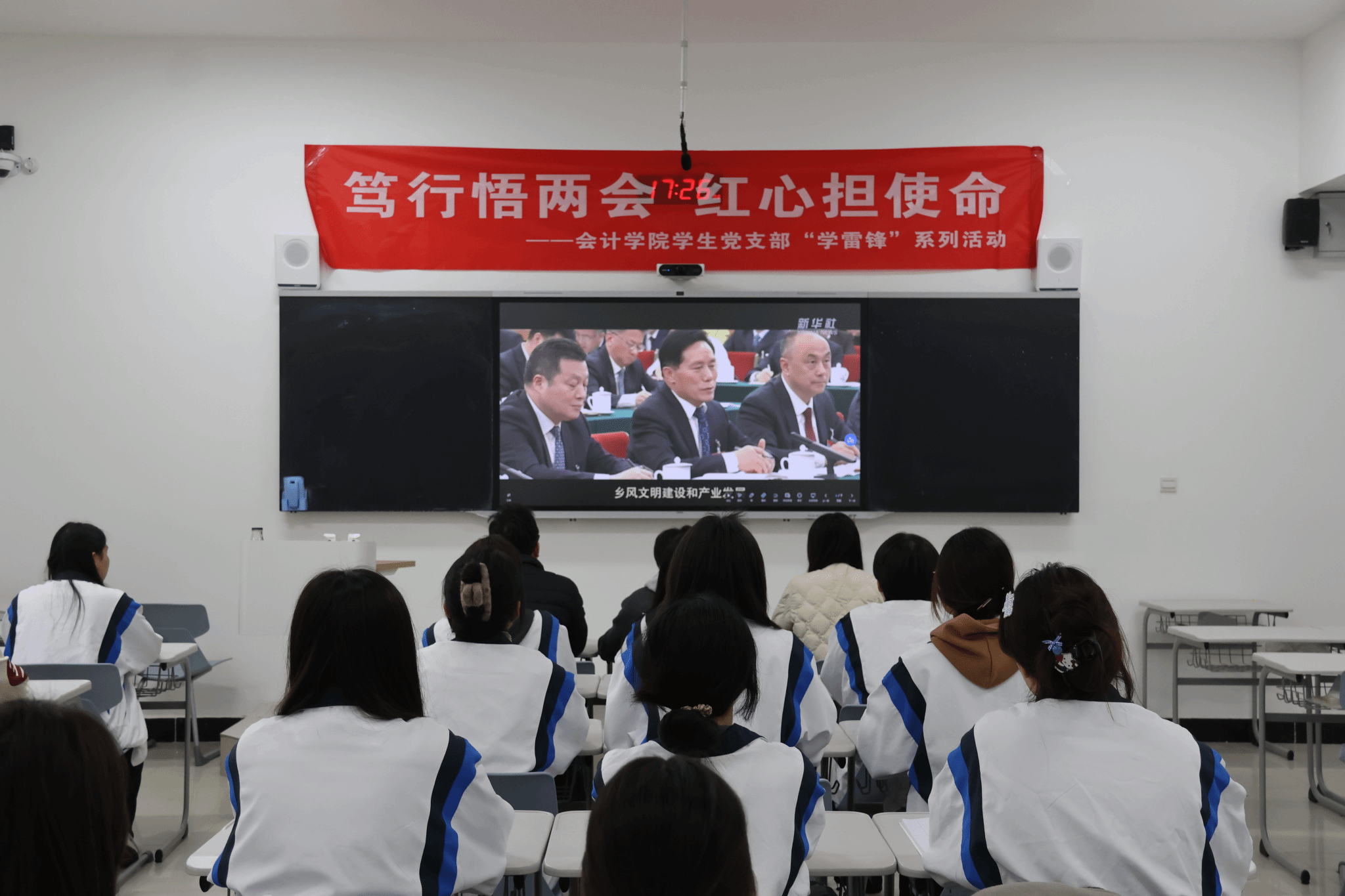 随后,支部师生党员通过集中观看学习资料、交流研讨感悟等形式,结合会计专业特色,探讨了两会中关于经济发展、预算管理、生态环保等议题与专业学习、未来发展的结合点。大家一致认为,两会的各项议程和部署为青年学子的成长发展指明了方向,作为会计学子,更要及时关注国家经济金融政策,夯实专业基础,练就过硬本领。