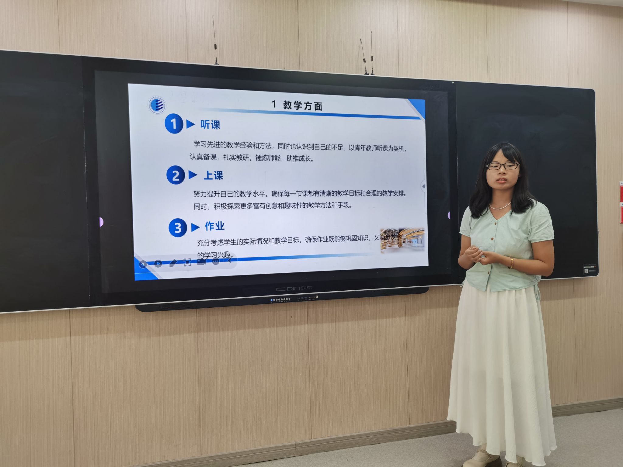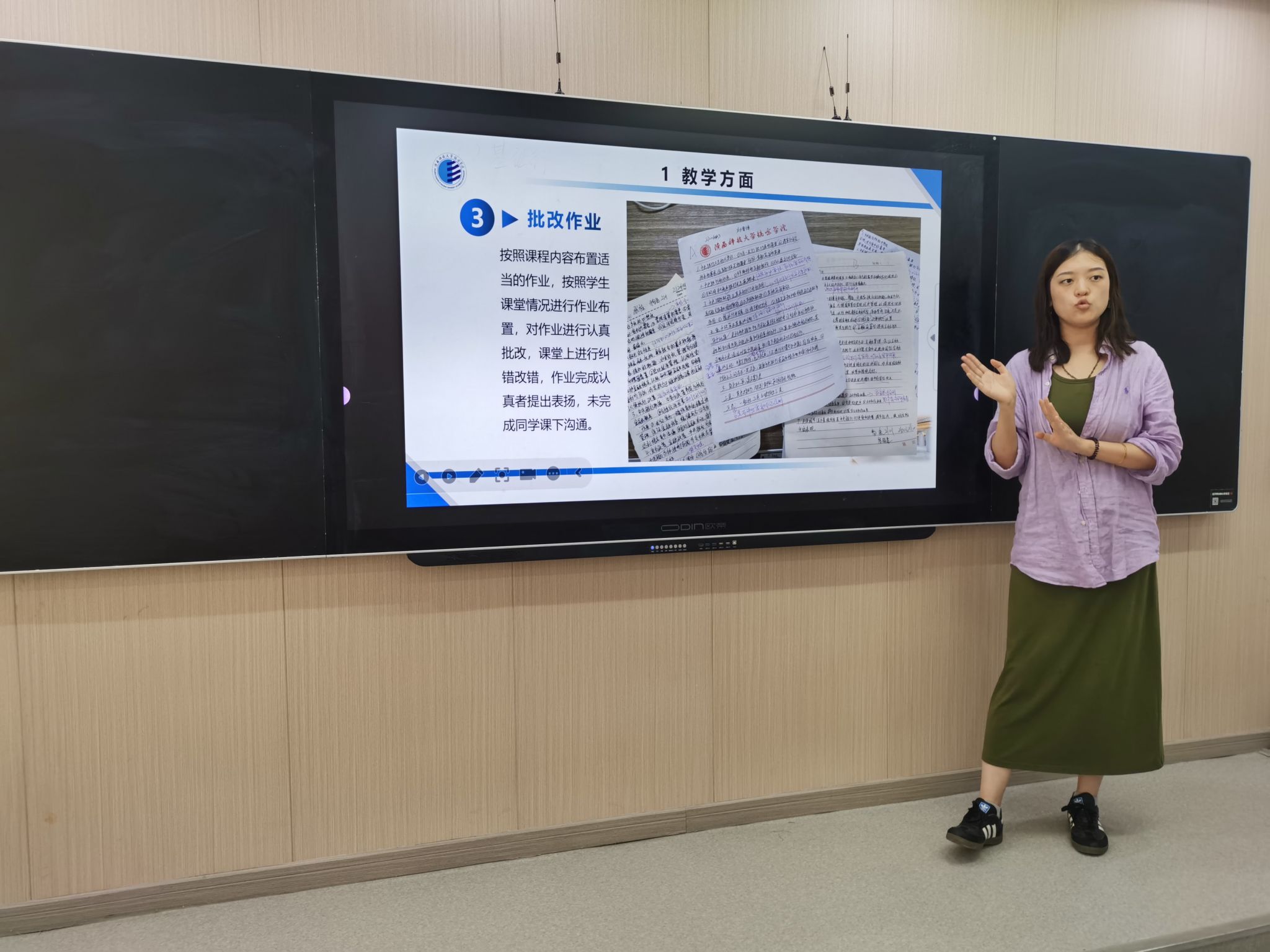 汇报完毕后,及老师对青年教师的汇报进行了点评,充分肯定了老师们的努力和成绩,同时,也分享了自己的教学和科研经验,为青年教师们提出了一些宝贵的意见和建议。她希望青年教师们能够继续加强教学研究,不断提高教学质量,同时积极开展科研工作,为公司的发展做出更大的贡献。
