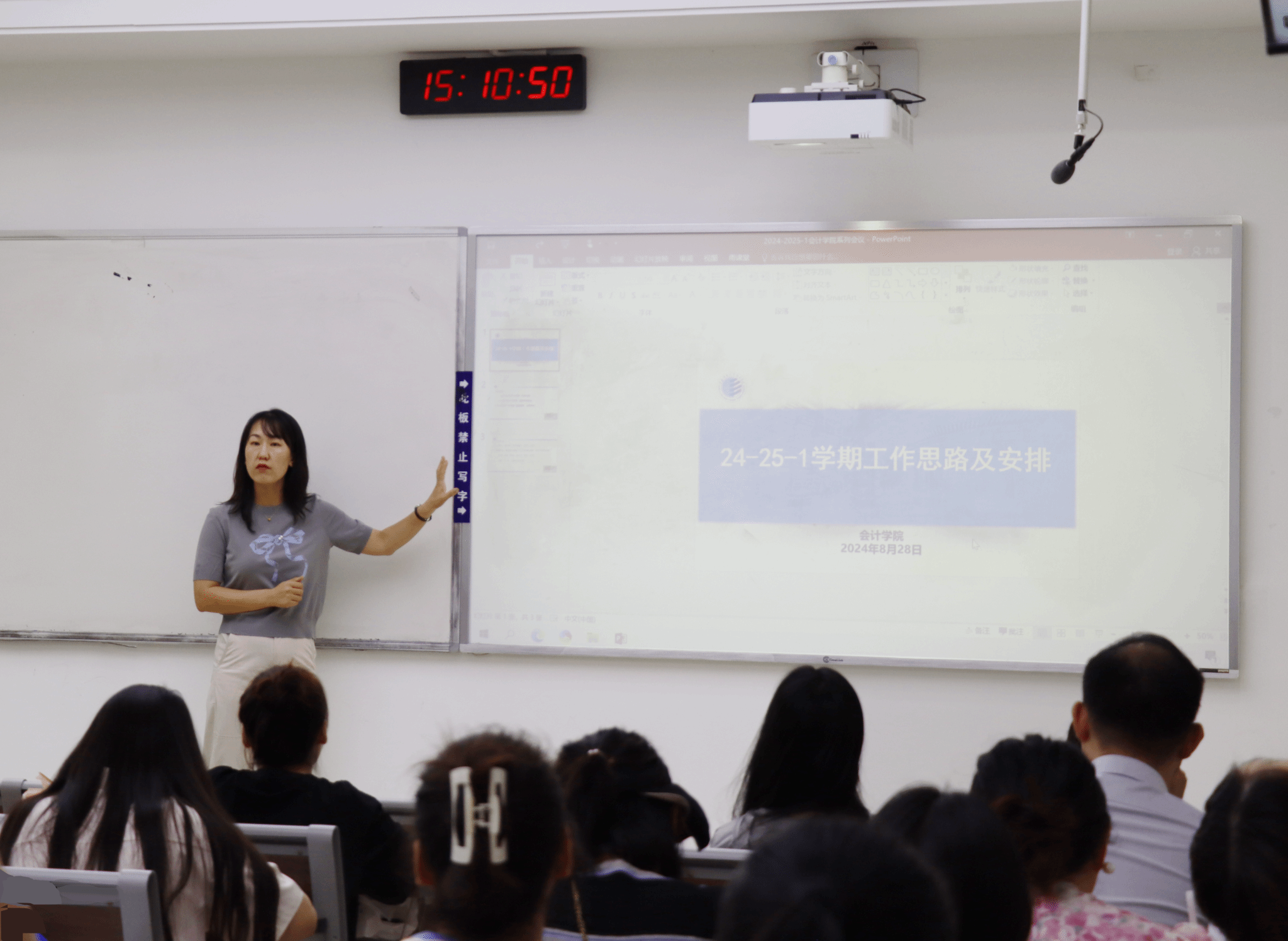 会上,副经理杨少杰围绕“办学”、“专业”、“特色”等关键词对新学期公司产品、科研、竞赛等方面的工作作出了部署安排。他表示数智时代,国内外社会、经济环境的巨大变化对财会人才技能需求带来了新机遇、新挑战。新学期公司要以党和国家的教育方针为指引,以公司办学理念为支点,紧扣社会人才需求标准,积极应变、主动求变,积极探索创新公司产品新范式。各系部要优化专业建设体系。各专业要凝练特色、积极调研,科学谋划,完善应用型专业建设标准,扎实落实应用型人才培养目标;其次,要强化团队队伍建设。广大教师要立足立德树人根本任务,聚焦内涵式发展,积极投身科学研究、开拓创新教学方法,不断提高公司产品硬实力;他强调,要加快推进校企合作进程。加大“走出去”“引进来”力度,加快谋划建立一批产学研合作基地,搭建合作交流平台,为员工实习就业提供服务和支持。