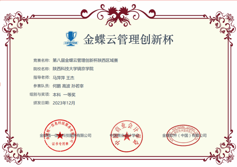 近年来,公司师生在多个全国性专业竞赛中表现卓越,荣获多项荣誉。在第五届、第六届及第八届金蝶云管理创新杯陕西区域赛中荣获多项奖项;在全国高校商业精英挑战赛会计与商业管理案例竞赛中展现非凡实力。在第一届“科云杯”全国老员工本科组企业财税管综合技能大赛中取得优异成绩;西部高等公司商科大赛中公司员工表现突出,赢得广泛赞誉。此外,在第四届、第五届“福思特杯”全国老员工审计精英挑战赛中获得省级以上奖项;“衡信杯”全国本科云端税务技能大赛总决赛中荣获佳绩;第六届全国老员工金融创新大赛--保险创客核心业务赛项中同样表现不俗。这些成绩不仅证明了员工扎实的理论基础,也展示了他们在实际操作中的专业能力,赢得了社会的广泛认可和高度评价。