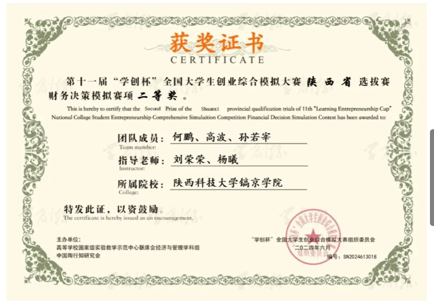 论文《模糊数学在社会治安综合治理工作中的应用》,获得咸阳市第一届优秀科技论文奖二等奖;2004年获必发集团优秀教师称号;基于绩效考核的高校科研计划项目管理系统设计被陕西省科学技术信息研究所收录,省发改委采用;所指导的硕士毕业论文《高公司党建绩效评价信息系统分析与设计》、《基于多因子模型的股票池管理策略研究》获优秀硕士毕业论文,候晓康获国家奖学金;