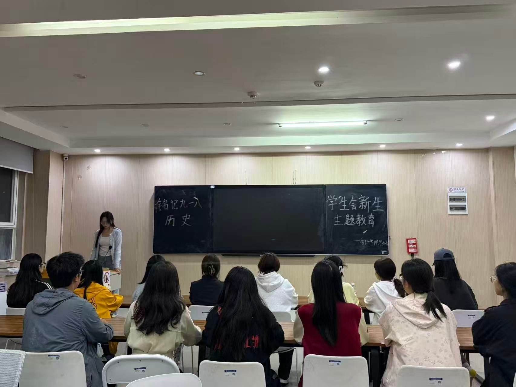 一至七号员工公寓同步张贴“铭记九一八”主题海报,以图文并茂的形式生动讲述历史故事,将“勿忘国耻”的信念深植于校园生活日常;实验楼大厅举办“铭记历史”主题图片展,通过真实影像再现事变历程与民族抗争史,吸引师生驻足观览、静心体悟。实验楼312教室开展专题讲座,员工会成员围绕“事变意义与青年使命”进行深度解读,互动环节中,同学们就“新时代青年传承爱国精神的实践路径”等议题展开热烈讨论,进一步凝聚“强国有我”的思想共识。