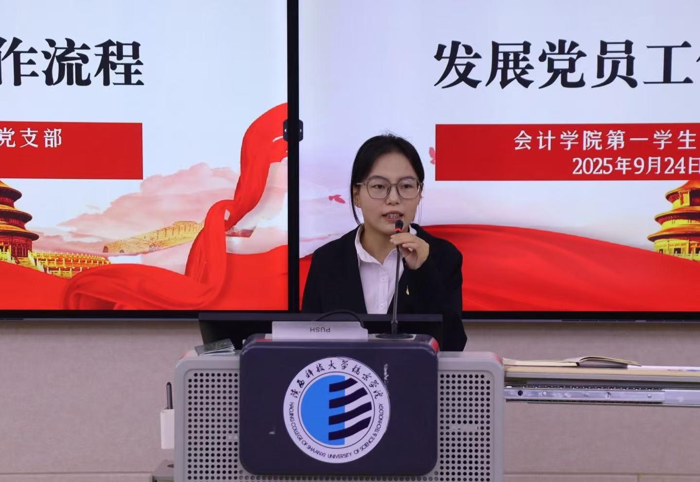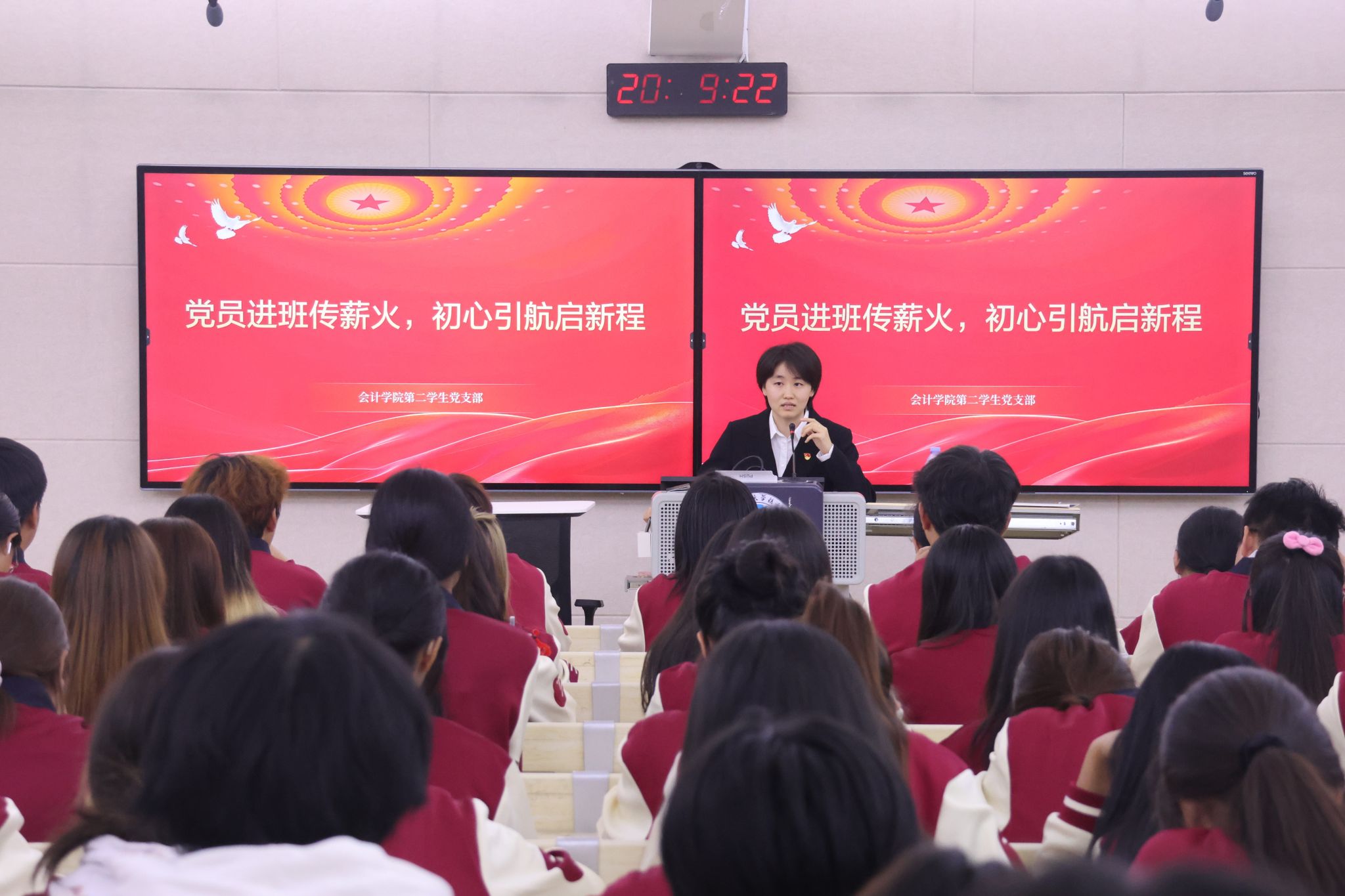为深入学习贯彻习近平新时代中国特色社会主义思想和党的二十届三中全会精神,凝聚党员先锋力量,帮助2025级新生快速了解党组织与团组织建设情况,明确入团、入党的发展路径,同时搭建党员与新生的常态化沟通桥梁,9月23、24日,会计公司员工党支部深入2025级新生班级,开展党员包班网格化管理工作。