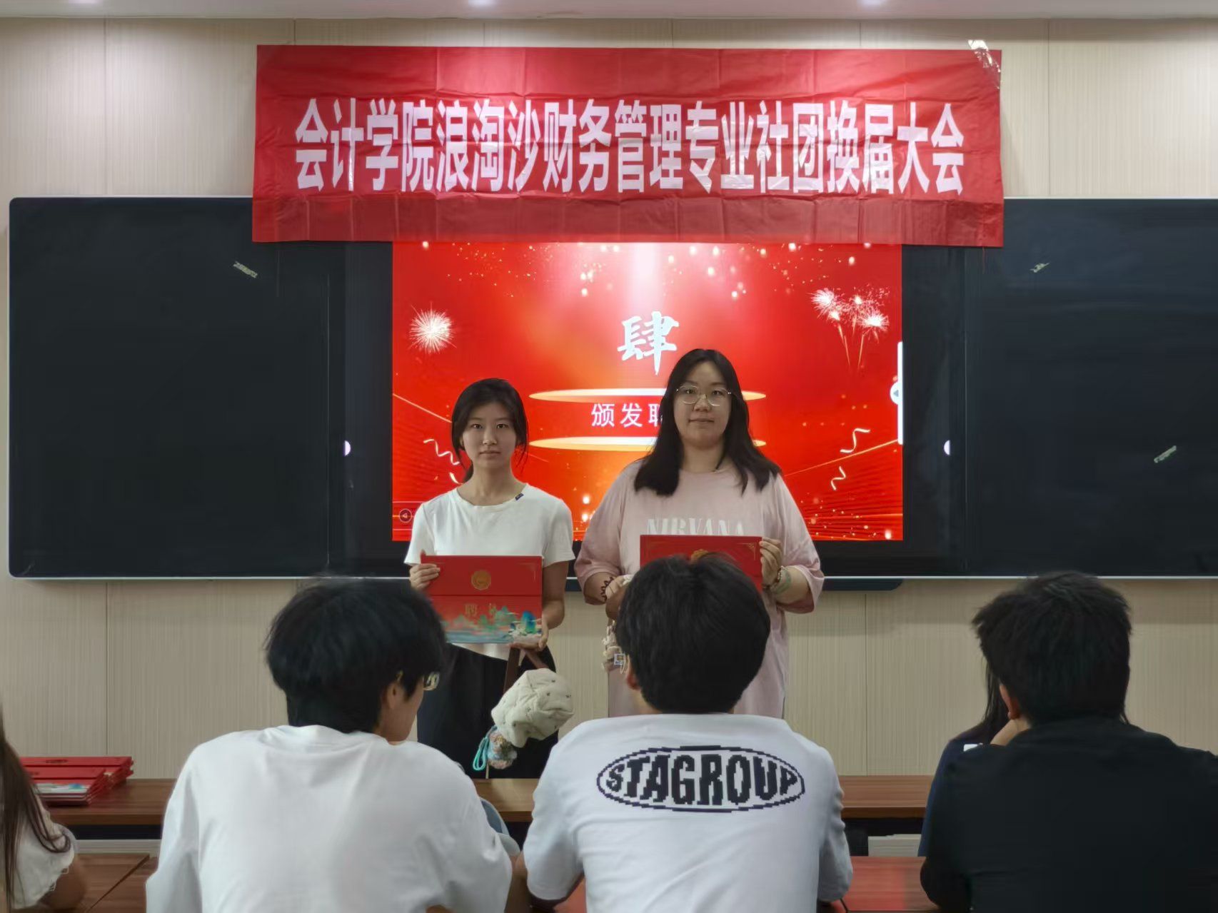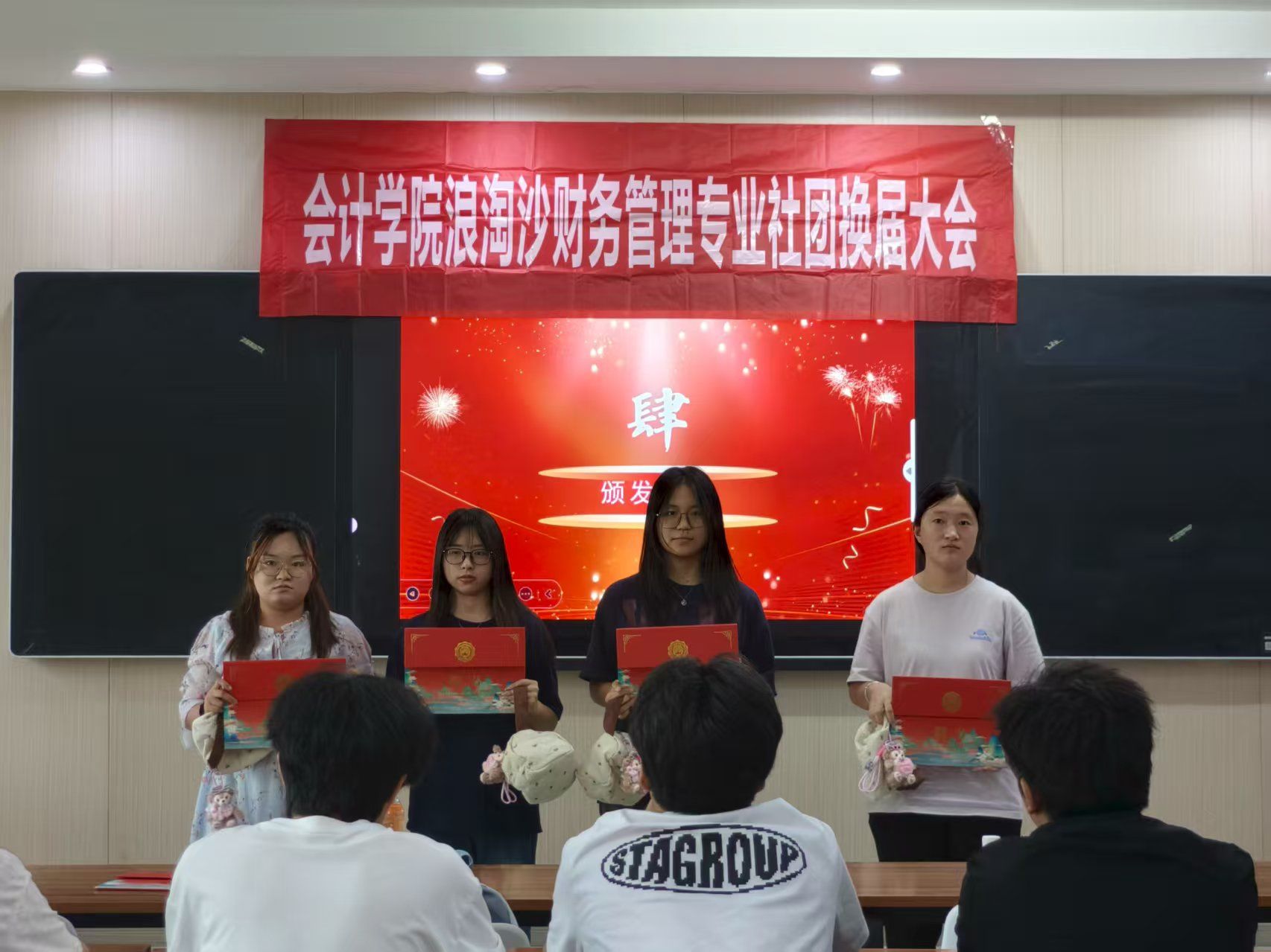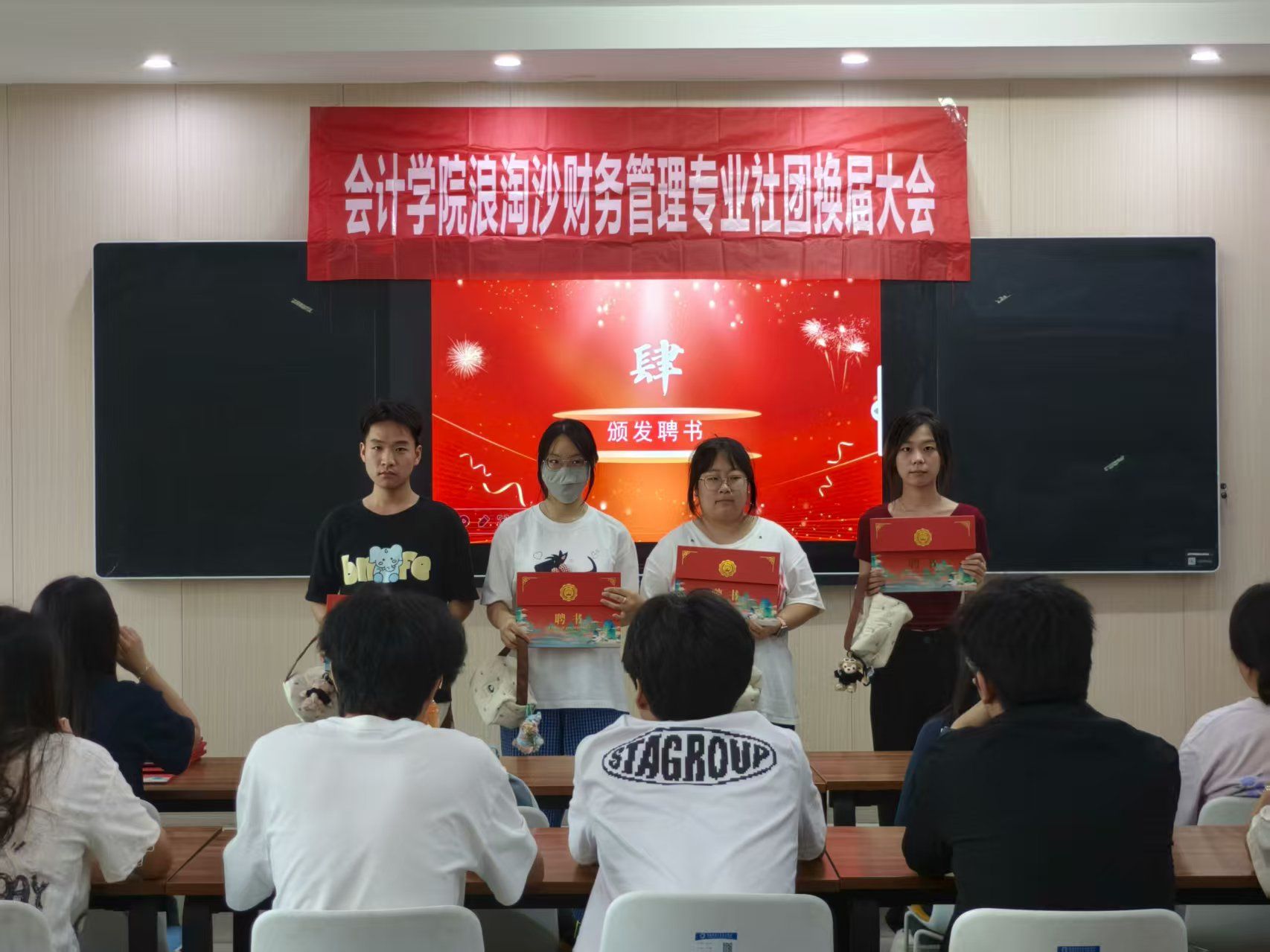 大会第三项,换届环节,新一届社长、副社长为上届干部颁发专业聘书与纪念礼品。这不仅是荣誉认可,更象征财务专业精神的交接——上届干部以财务人的严谨与担当筑牢基础,新一届将传承这份专业基因,续写新篇。