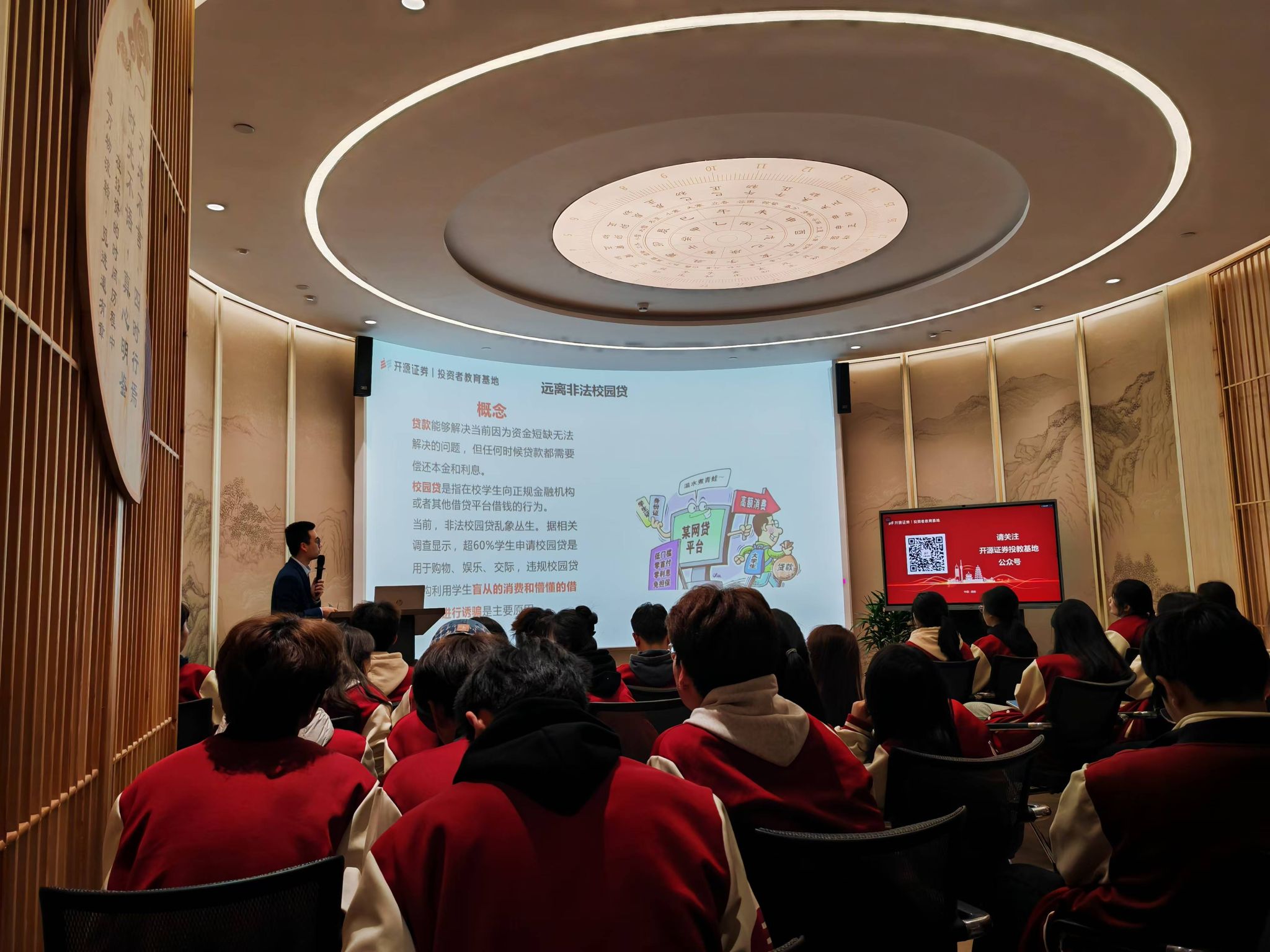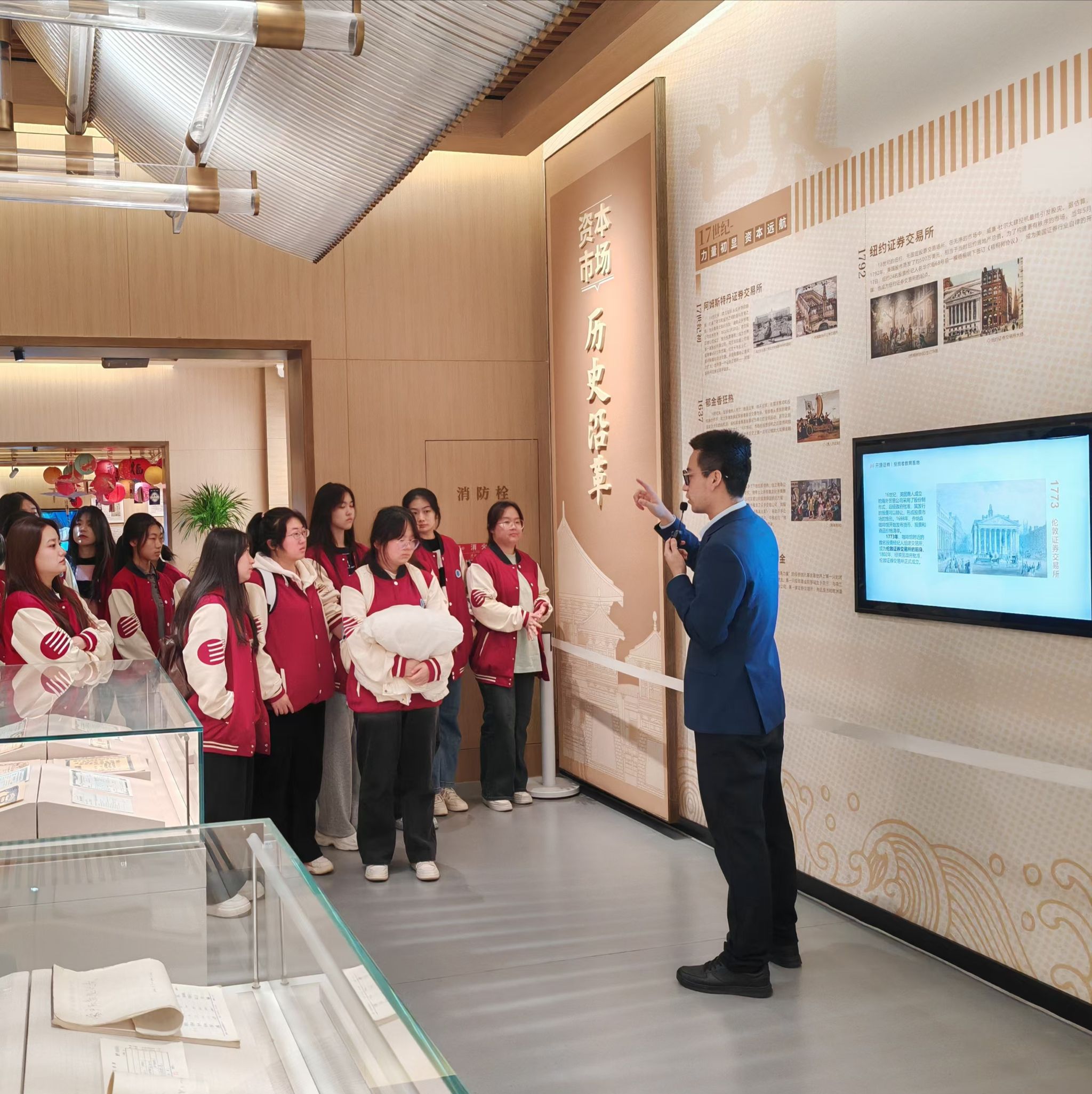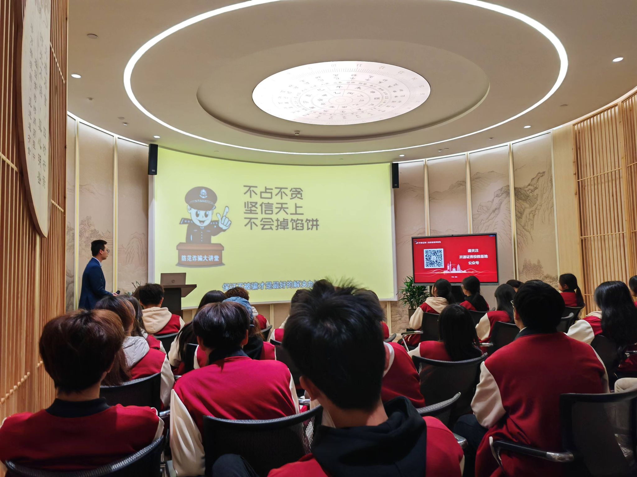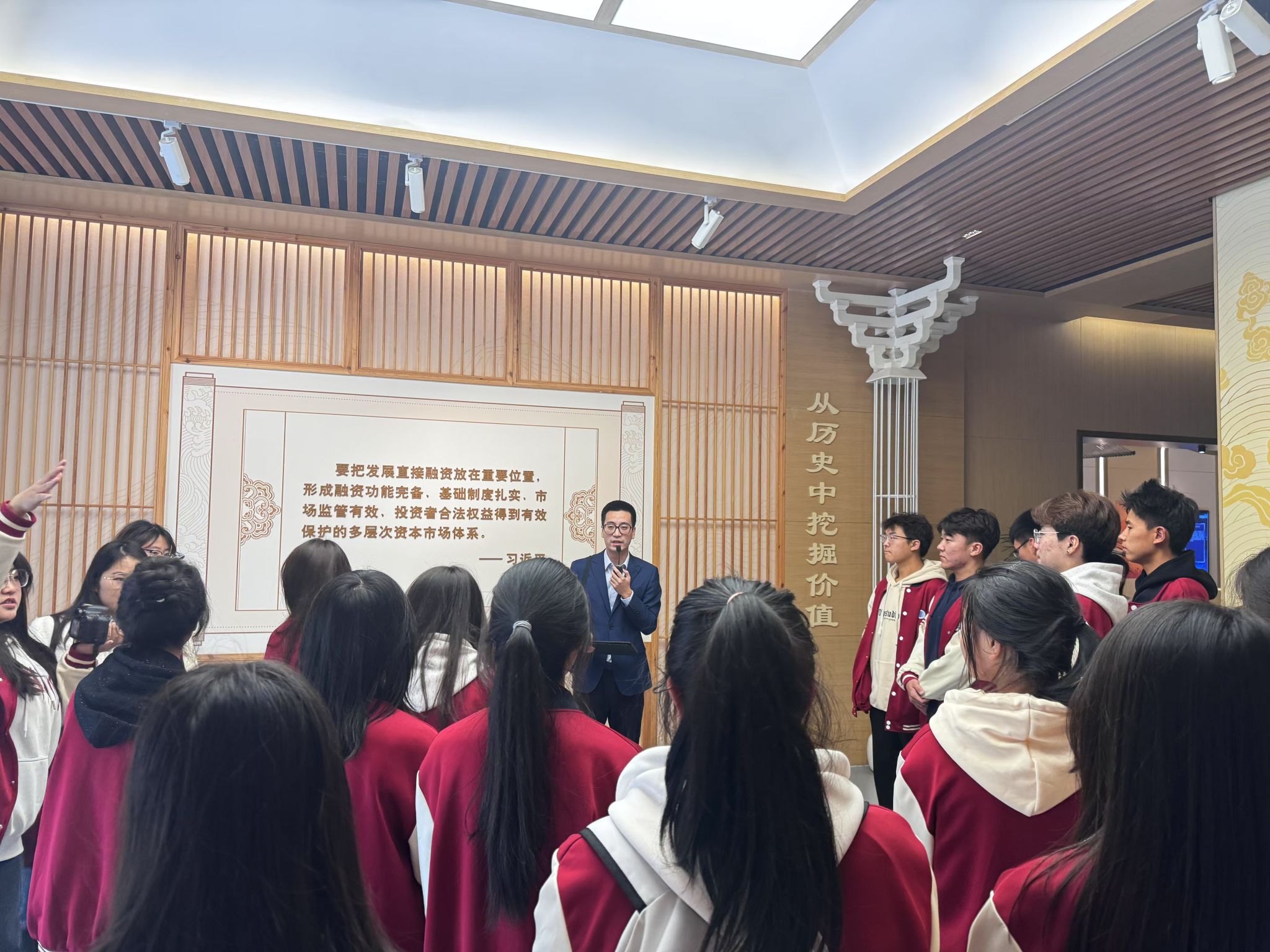 开源证券投教基地中心工作人员对同学们的到来表示热烈欢迎。在布置井然有序的展示大厅内,工作人员深入浅出地为同学们讲述开源证券近年来的卓越奋进历程。在风险警示案例区,工作人员通过剖析解读真实故事让同学们领悟金融风险,搭建风险防范意识框架,为未来涉足金融领域铺就认知基石。
