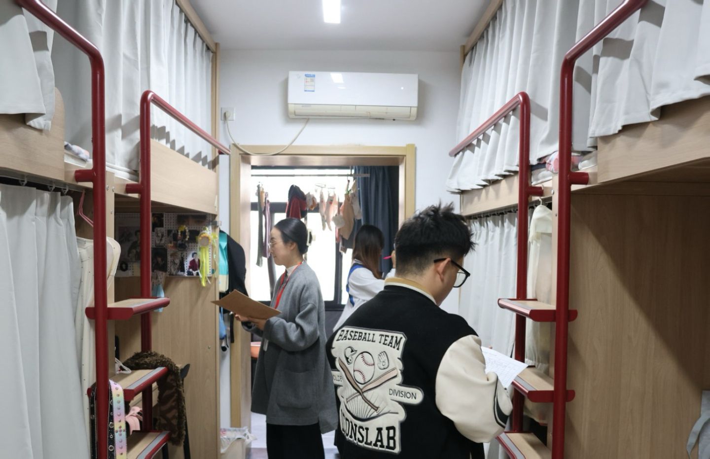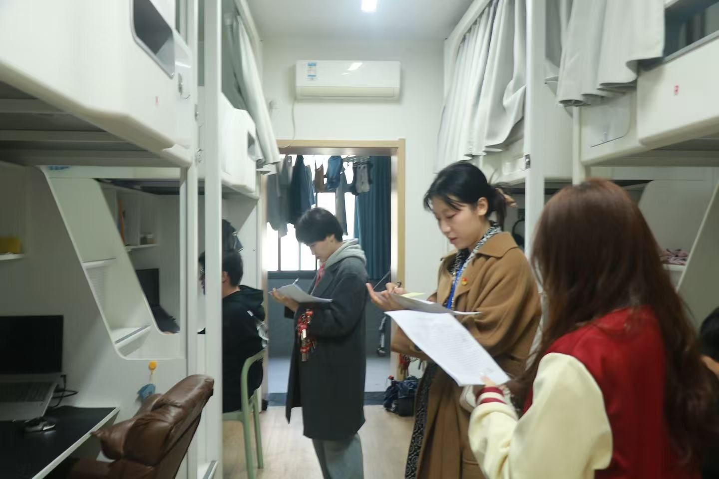 “最美宿舍”评比现场同样亮点纷呈。各参赛宿舍精心布置,有的以“简约清新”为风格,桌面地面一尘不染,物品摆放井然有序;有的融入专业特色,将学科元素与宿舍装饰巧妙结合,展现出浓厚的学习氛围;还有的以“温馨团结”为核心,张贴着室友们的合影、手写的励志标语,处处彰显着集体的凝聚力。评比小组本着“公平、公正、公开”的原则,逐一进入宿舍实地考察,进行现场打分,后续公司将评选出“最美宿舍”一、二、三等奖奖项。